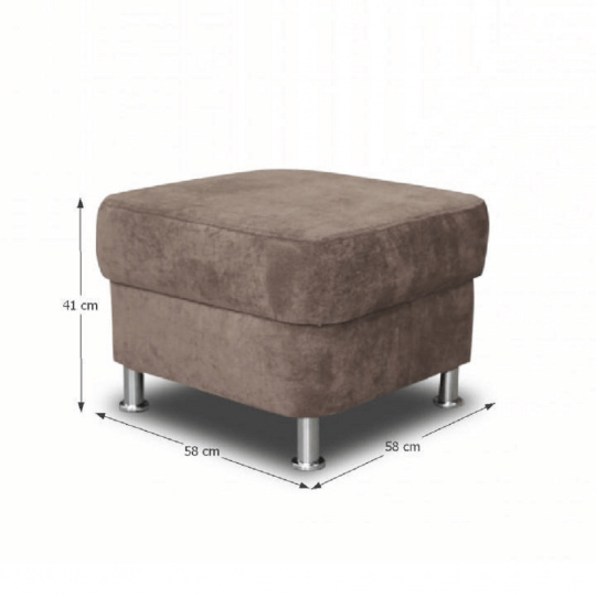Moderní taburet SANTIAGO Materiál: látka Oděruodolnost textilie podle testu Martindale: 72 000 oděrek Barva: hnědá Matrix 5 Kovové nožičky s povrchovou úpravou chrom Rozměry (ŠxHxV): 58x58x41 cm Výška sedu: 41 cm Hloubka sedu: 58 cm Nosnost na osobu: 90 kg Výška spodního prostoru od podlahy: 10 cm Možnost objednání v 6 barevných provedeních látky Matrix v ceně: roh - 33.090 Kč, křeslo - 9.890 Kč, taburet - 3.290 Kč. Při individuální objednávce je třeba zaplatit 10% zálohu z dané částky. Po uhrazení zálohy bude Váš požadavek zadán do výroby. Doba dodání 6-8 týdnů. Váš výběr poznamenejte do poznámky v objednávce.