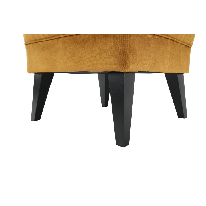 Materiál: látka Kronos 01 / dřevo Oděruodolnost textilie podle testu Martindale: 50 000 oděrek Barva: měděná / černá Rozměry křesla (ŠxHxV): 50x50x43 cm Výška spodního prostoru od podlahy: 18 cm Nosnost na osobu: 90 kg Dodávané v demontu