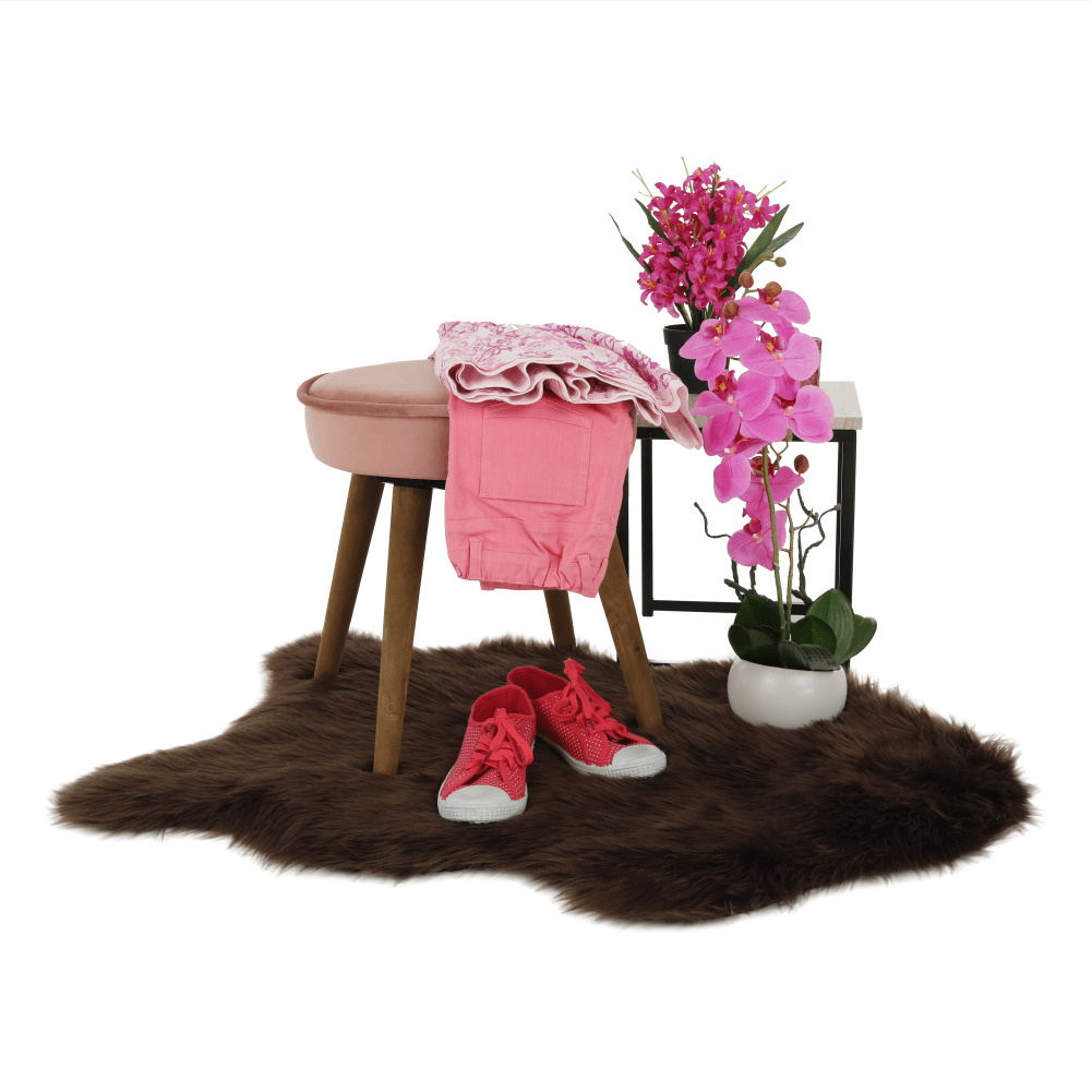 Taburet, růžová Velvet látka / hnědá, SAIDA