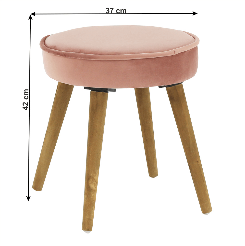 Materiál: látka Velvet / masivní borovicové dřevo Oděruodolnost textilie podle testu Martindale: 80 000 oděrek Barva: růžová / hnědá Rozměry (ŠxHxV): 37x37x42 cm Nosnost: 80 kg Dodávané v demontu.