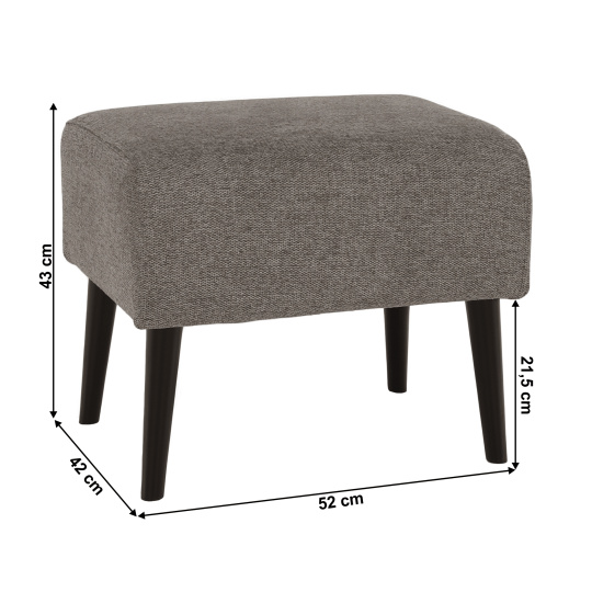Materiál čalounění: látka Matana 03 Oděruodolnost textilie podle testu Martindale: 57 000 Barva čalounění: šedá Materiál nohy: dřevo Barva nohy: černá Rozměry (ŠxHxV): 52x42x43 cm Nosnost na osobu: 90 kg Hmotnost: 7 kg Výška spodního prostoru od podlahy: 21,5 cm Elegantní a luxusní design Celočalouněný Dodáváno v monte