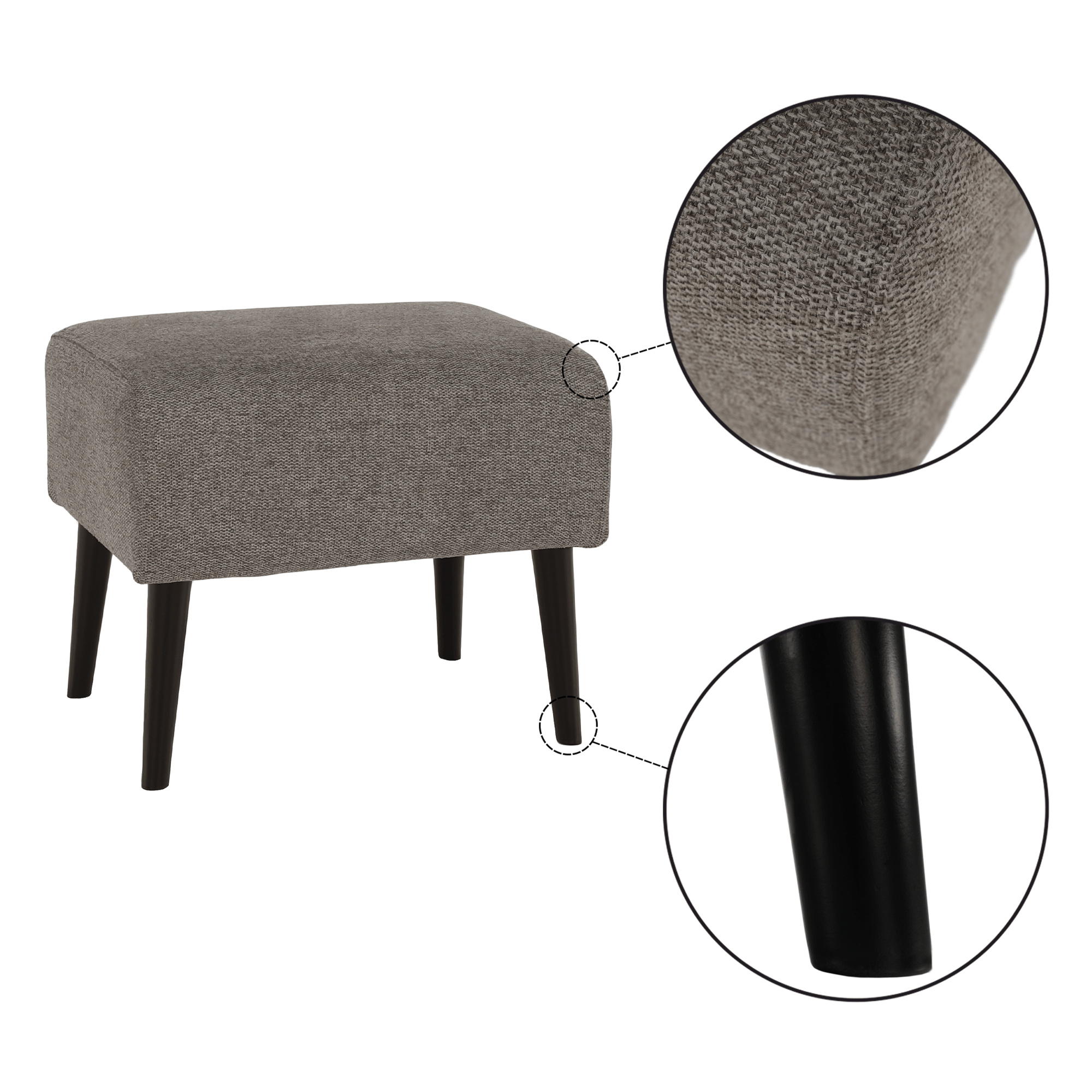 Materiál čalounění: látka Matana 03 Oděruodolnost textilie podle testu Martindale: 57 000 Barva čalounění: šedá Materiál nohy: dřevo Barva nohy: černá Rozměry (ŠxHxV): 52x42x43 cm Nosnost na osobu: 90 kg Hmotnost: 7 kg Výška spodního prostoru od podlahy: 21,5 cm Elegantní a luxusní design Celočalouněný Dodáváno v monte