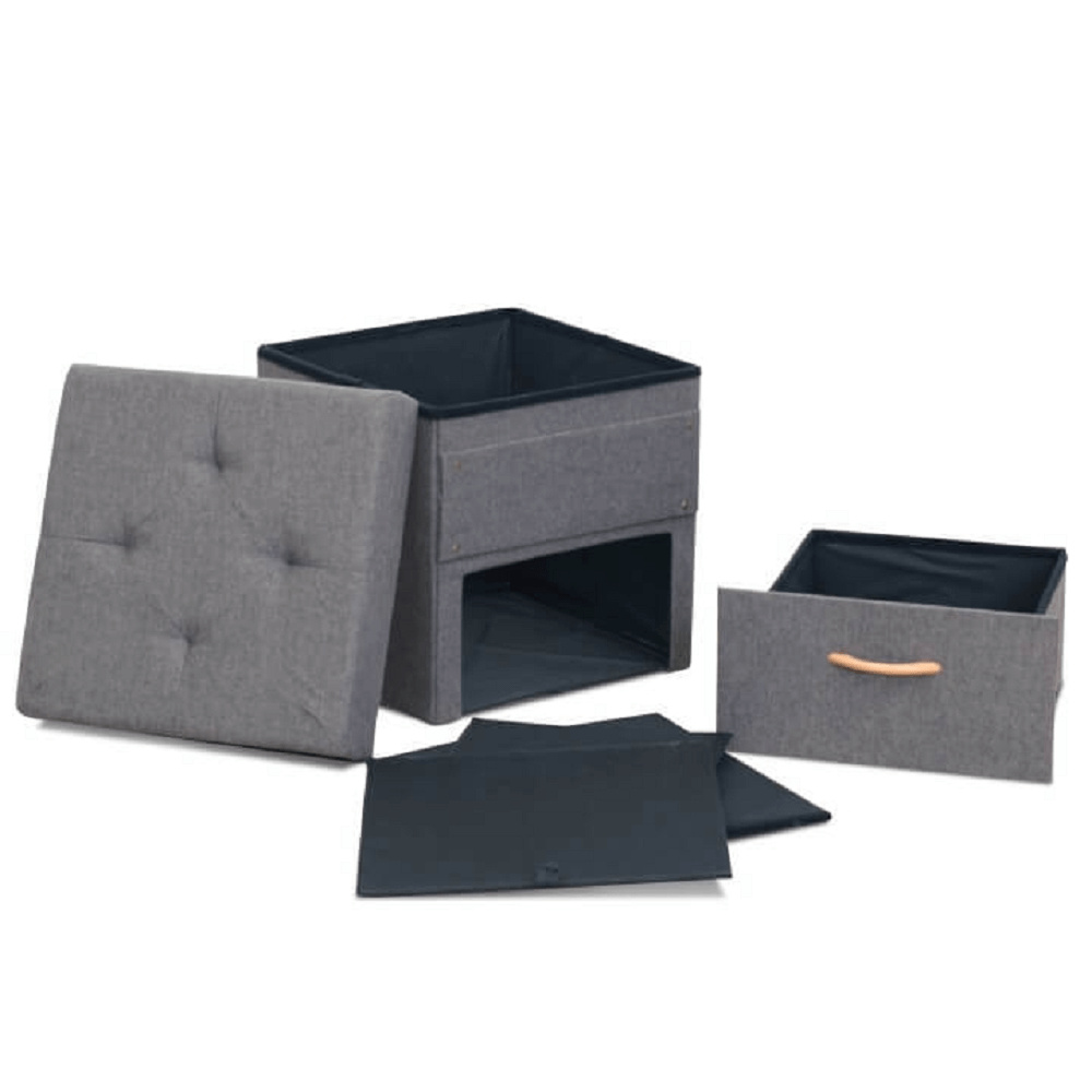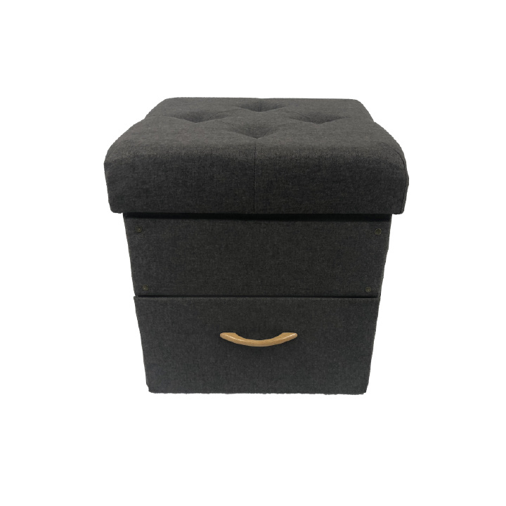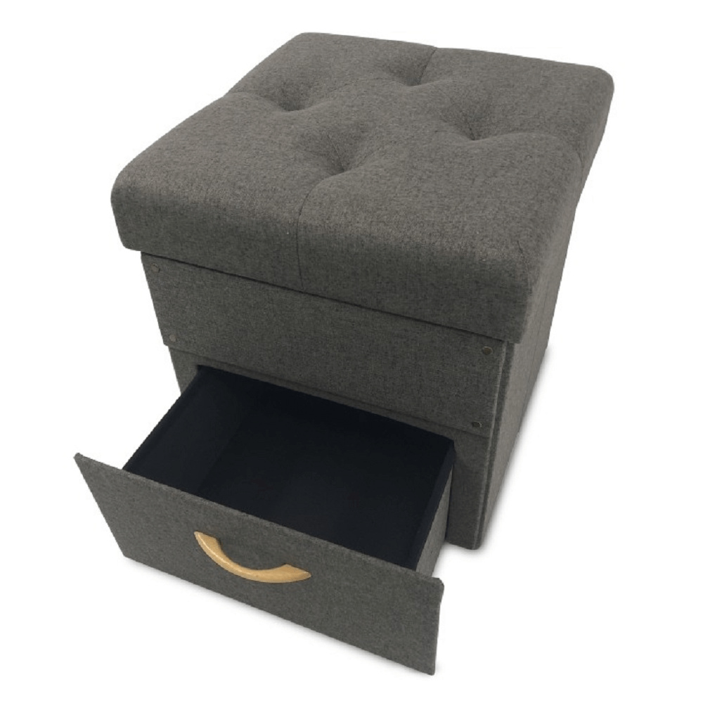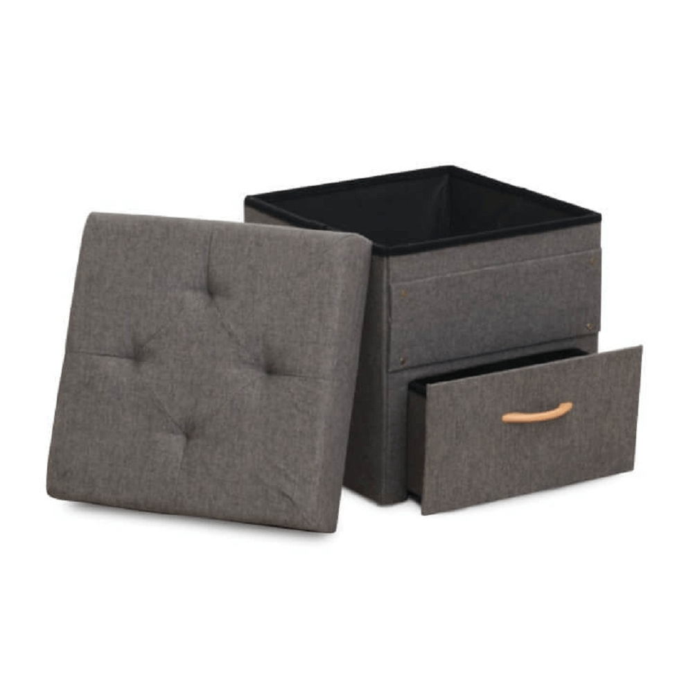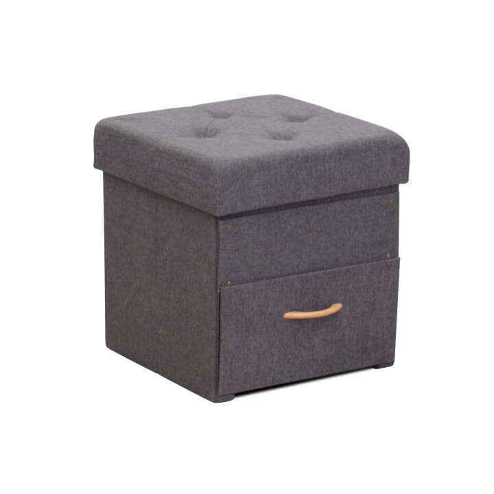 Prošívaný taburet SULOT TYP 1 Materiál: látka Oděruodolnost textilie podle testu Martindale: 90 000 oděrek Barva: šedá Rozměry ŠxHxV: 42x42x43 cm Hloubka sedu: 42 cm Výška sedu: 43 cm Úložný prostor s jednou zásuvkou. dodáváno v demontu.