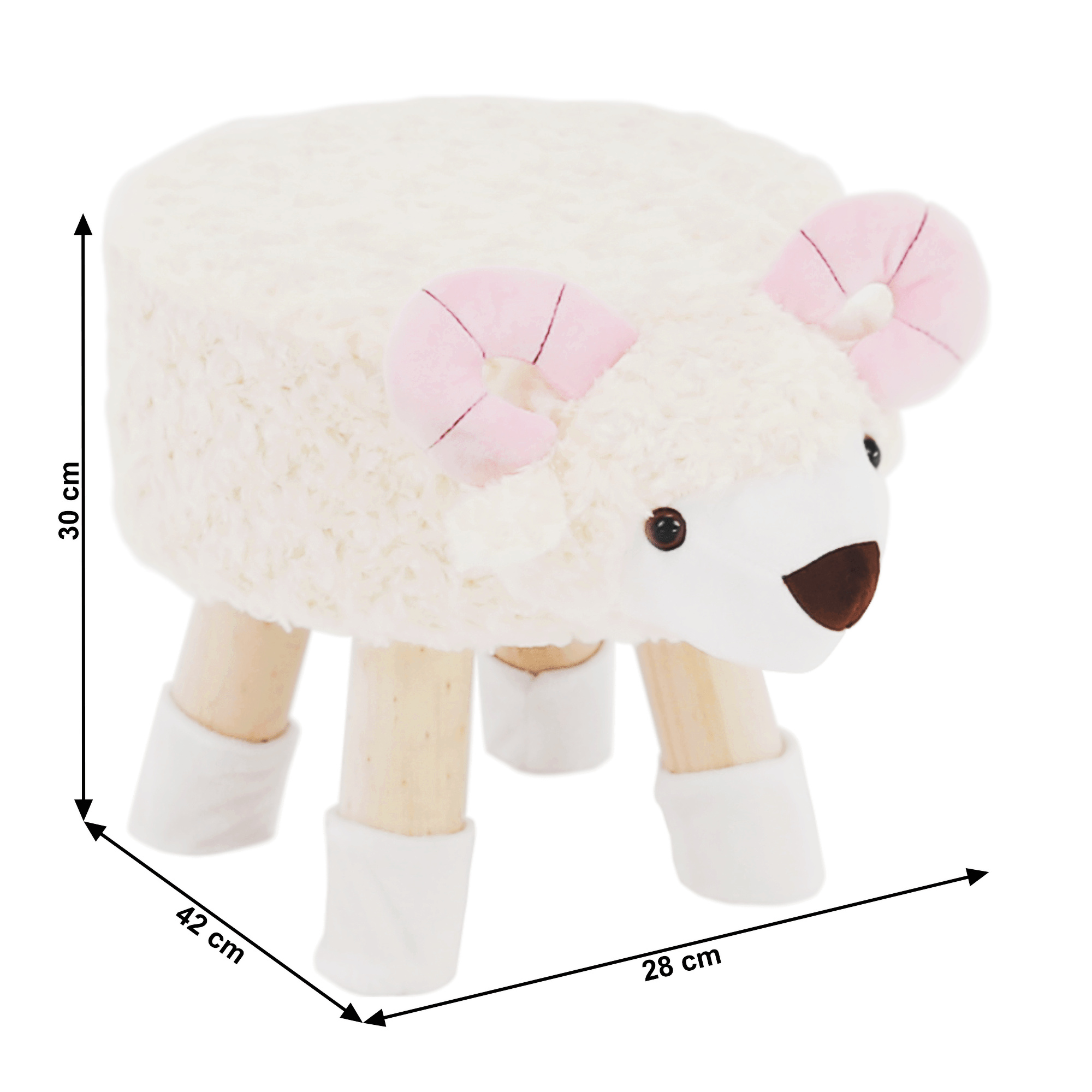 Taburet ve tvaru ovečky látka Velvet bílá/růžová/přírodní, LOLA
