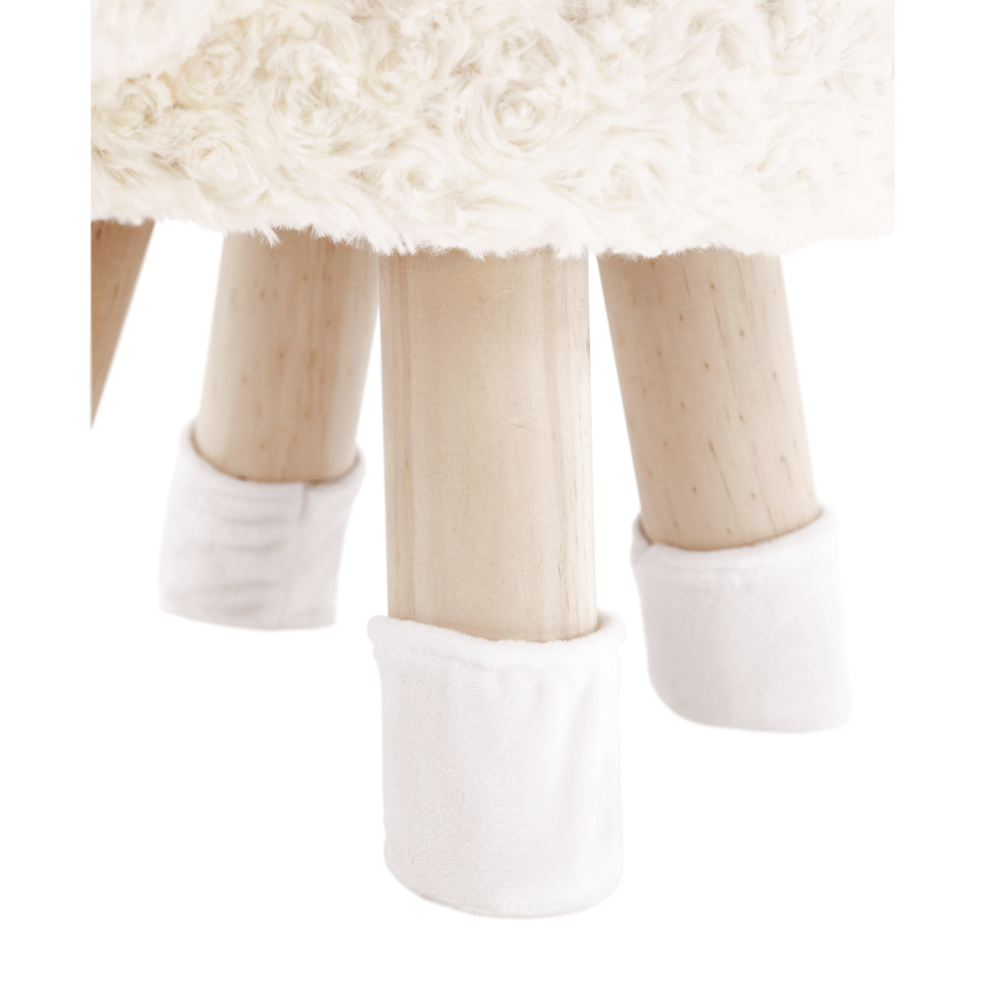 Materiál čalounění: látka Velvet Oděruodolnost textilie podle testu Martindale: 80 000 oděrek Barva čalounění: bílá Materiál nohy: masiv Barva nohy: přírodní Dřevěná konstrukce molitanová výplň Rozměry (ŠxHxV): 42x28x30 cm Nosnost: 30kg S nožičkami Výška nožiček: 16 cm design ovečky Dodávané v demontu