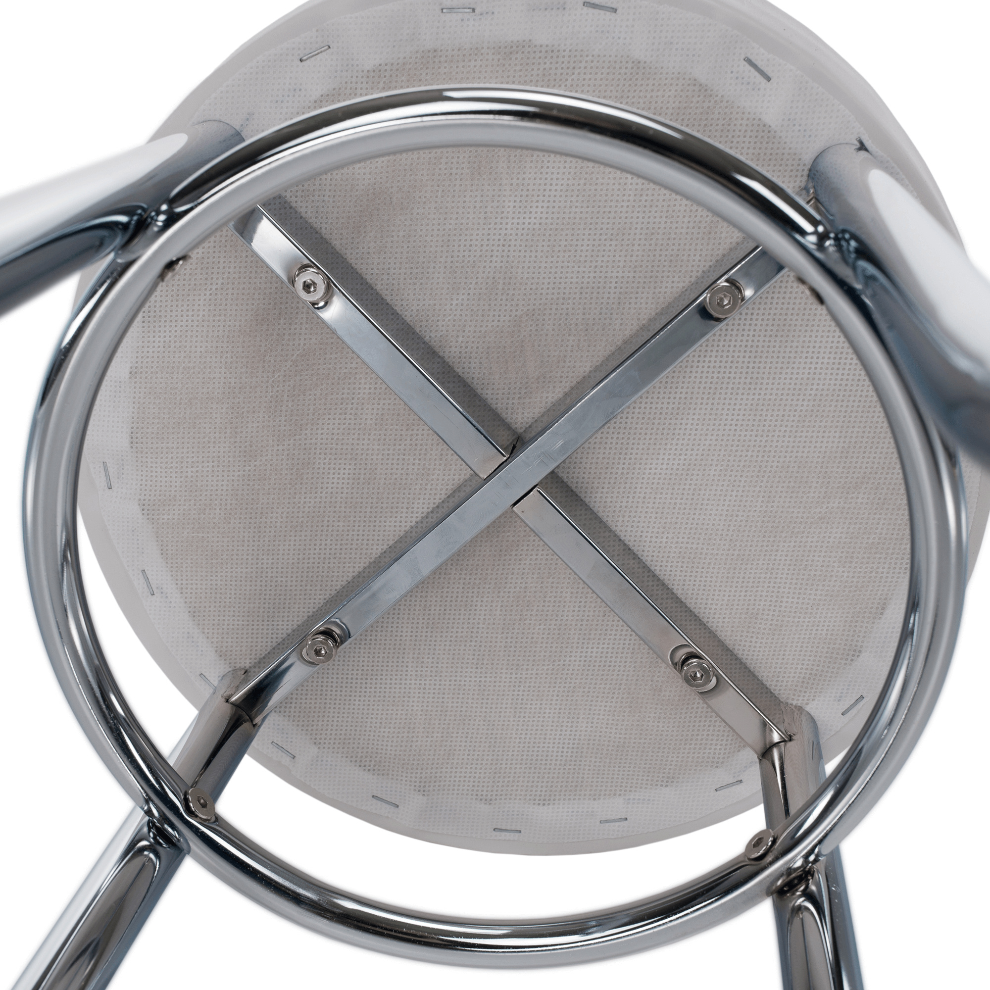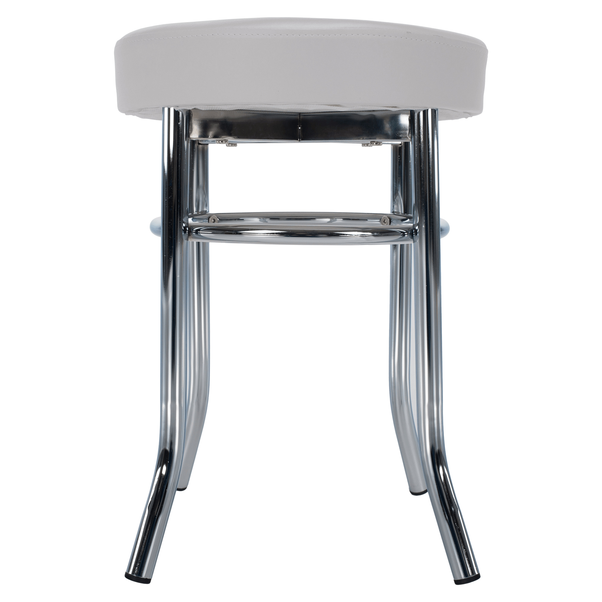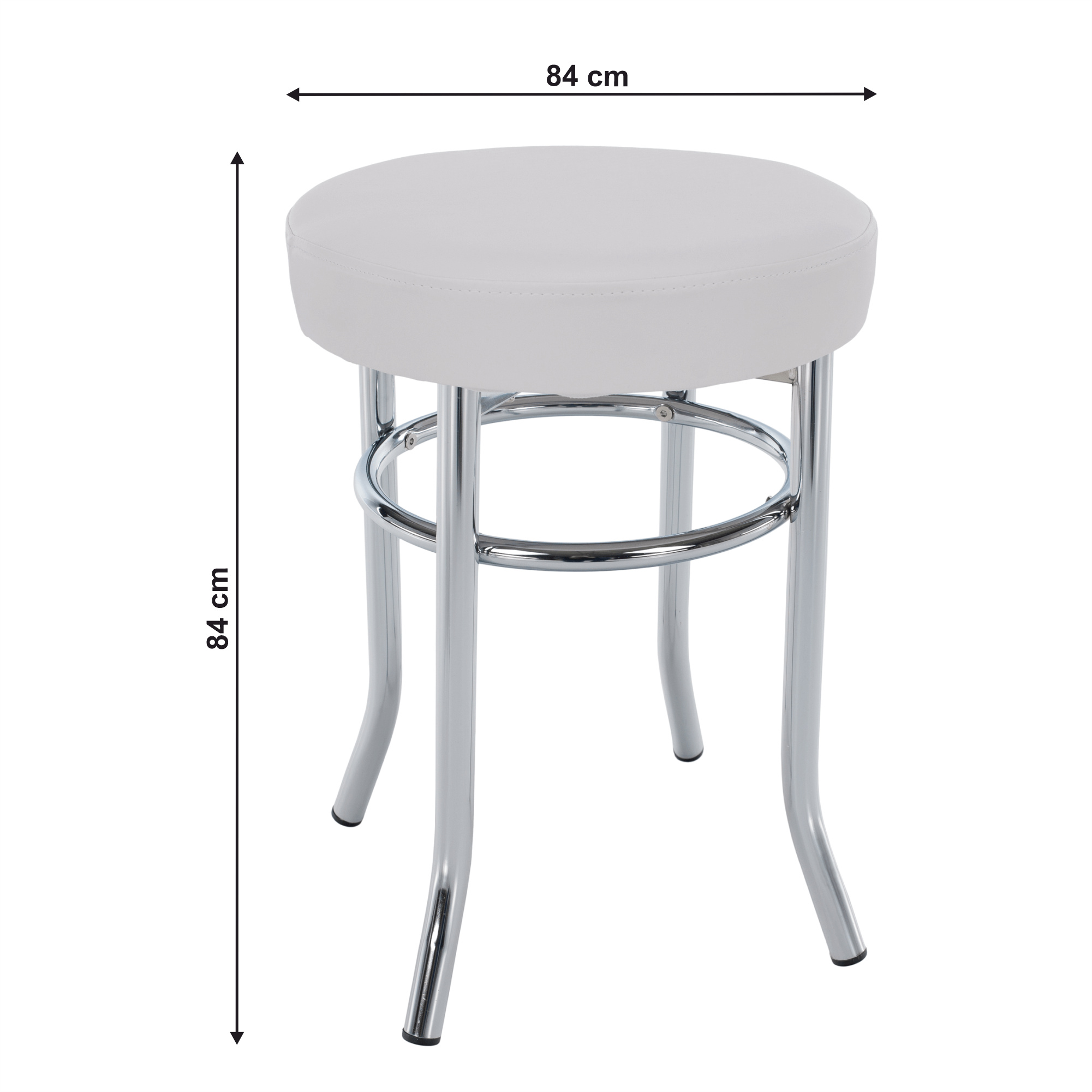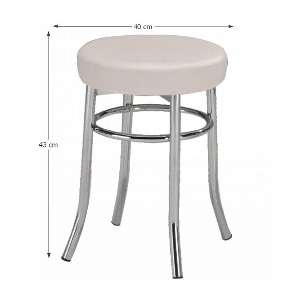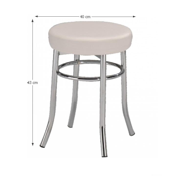 Taburet IRENA, kov chrom / ekokůže bílá Oděruodolnost textilie podle testu Martindale: 100 000 oděrek Výška sedu: 43 cm, průměr: 33 cm. Dodávané v demontu.