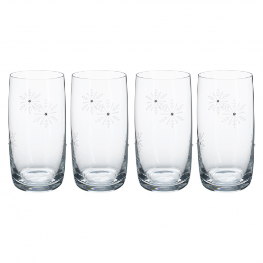 TEMPO-KONDELA SNOWFLAKE DRINK, sklenice na vodu, set 4 ks, s krystaly, 460 ml