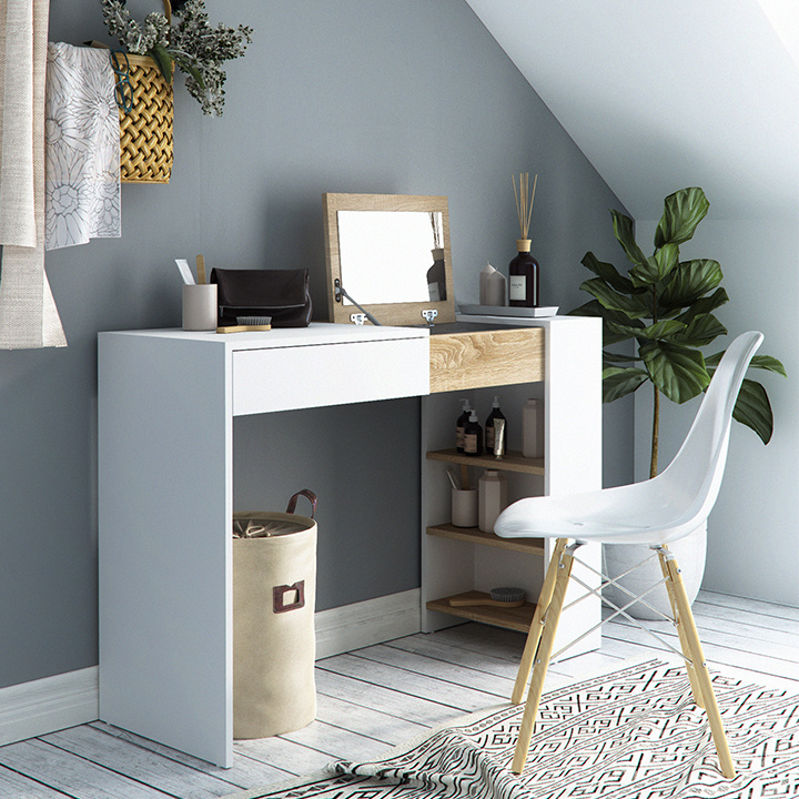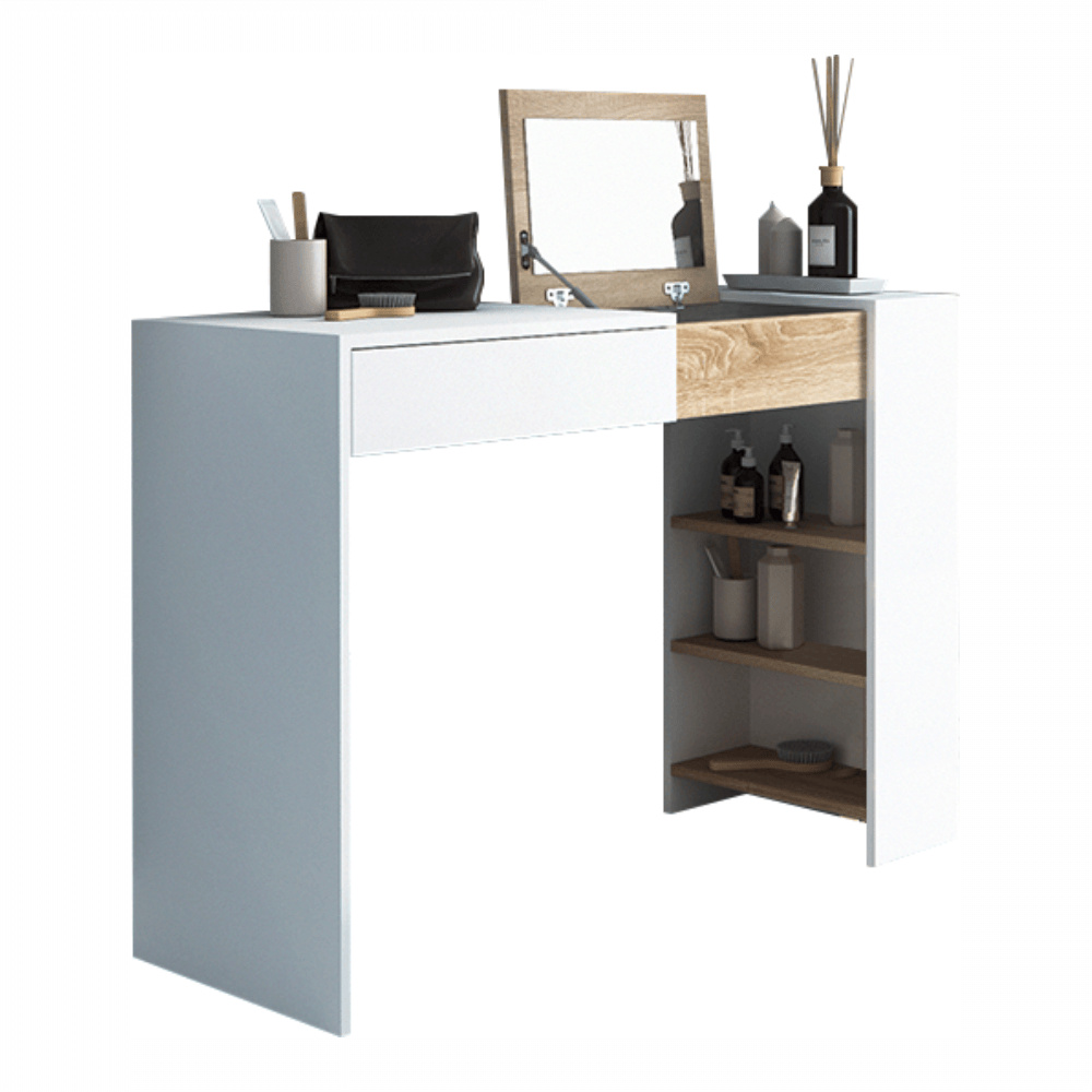 Toaletní stolek / psací stůl, bílá / dub sonoma, ELIS
