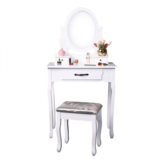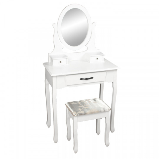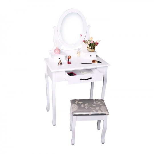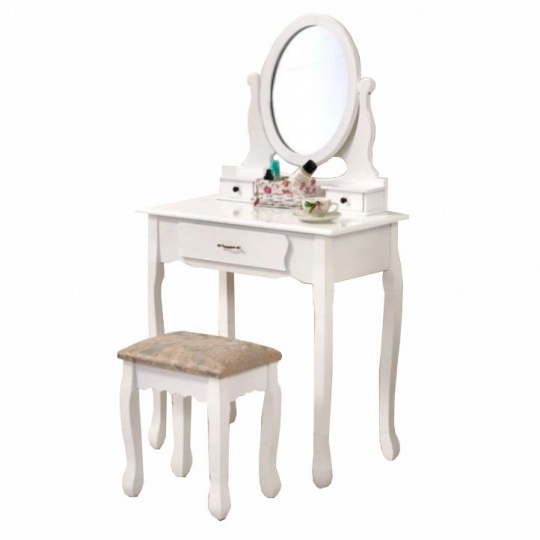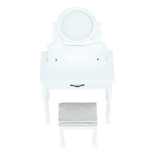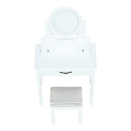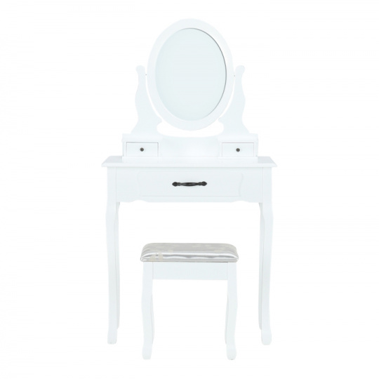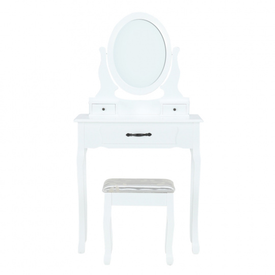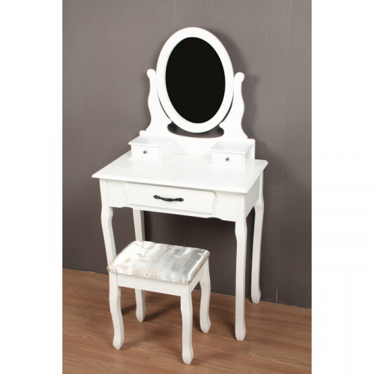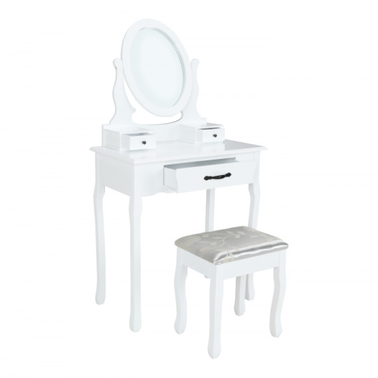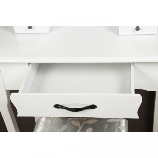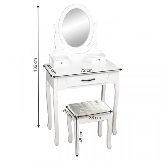 Toaletní stolek s taburetem, bílá / stříbrná, LINET New