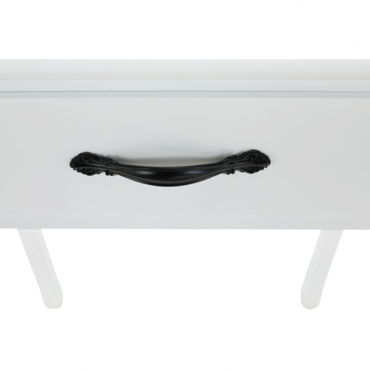 Materiál: MDF Tloušťka materiálu: 15 mm Barva: bílá Rozměry (ŠxHxV): 80x40x75 cm Nosnost: 20 kg jeden šuplík konzola konzolový stolek Dodávané v demontu. Hmotnost: 10.3kg