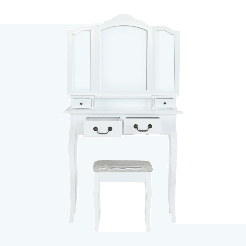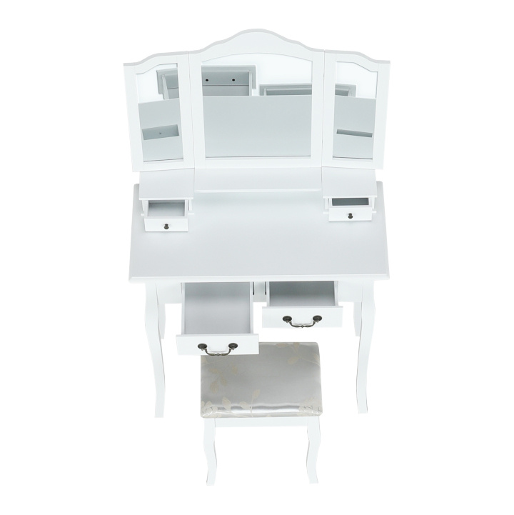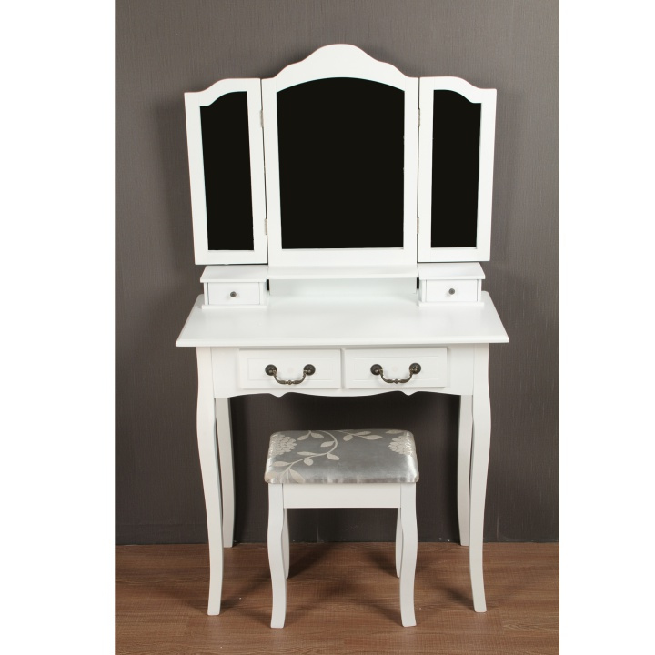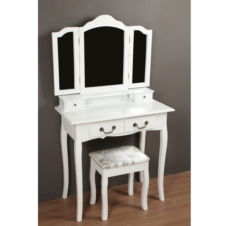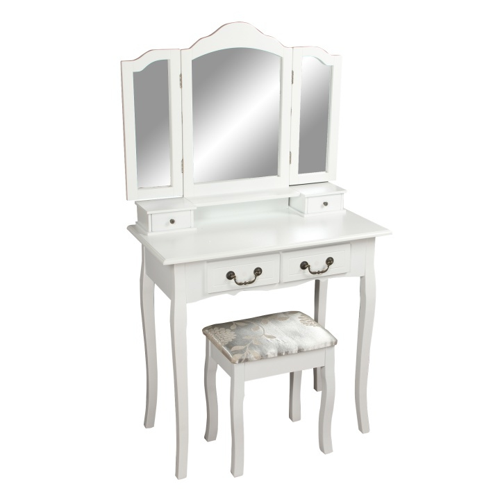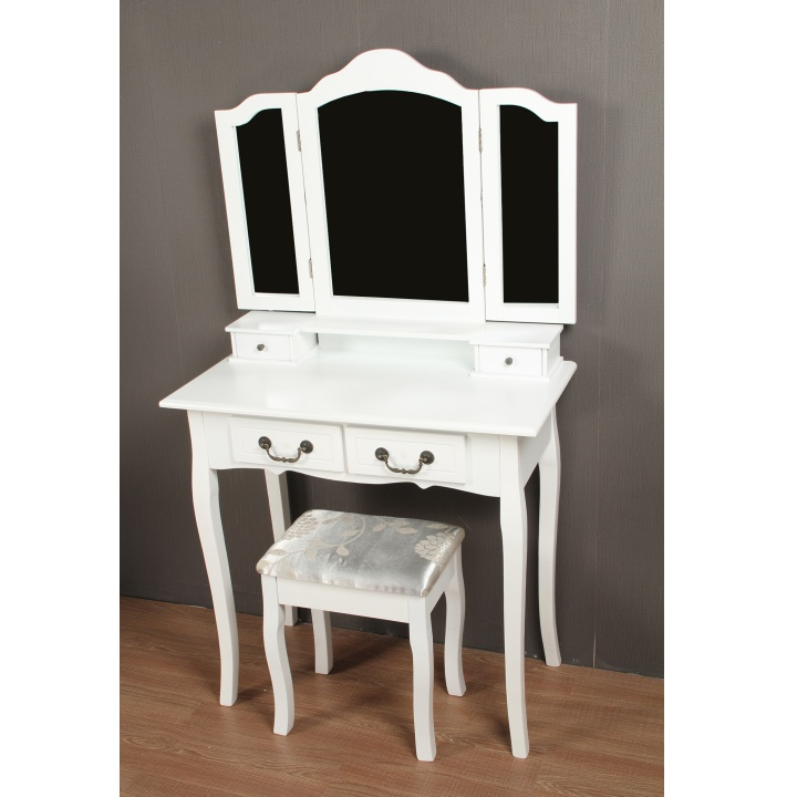 Toaletní stolek s taburetem, bílá/stříbrná, REGINA NEW