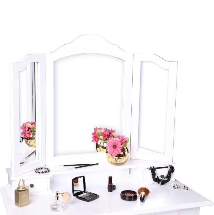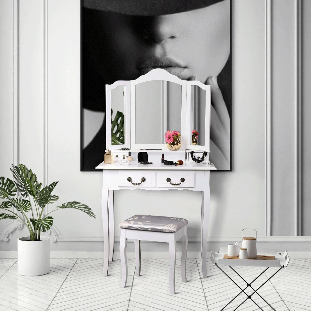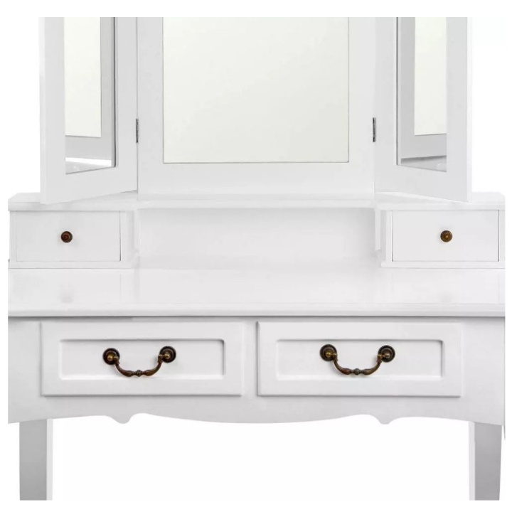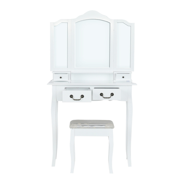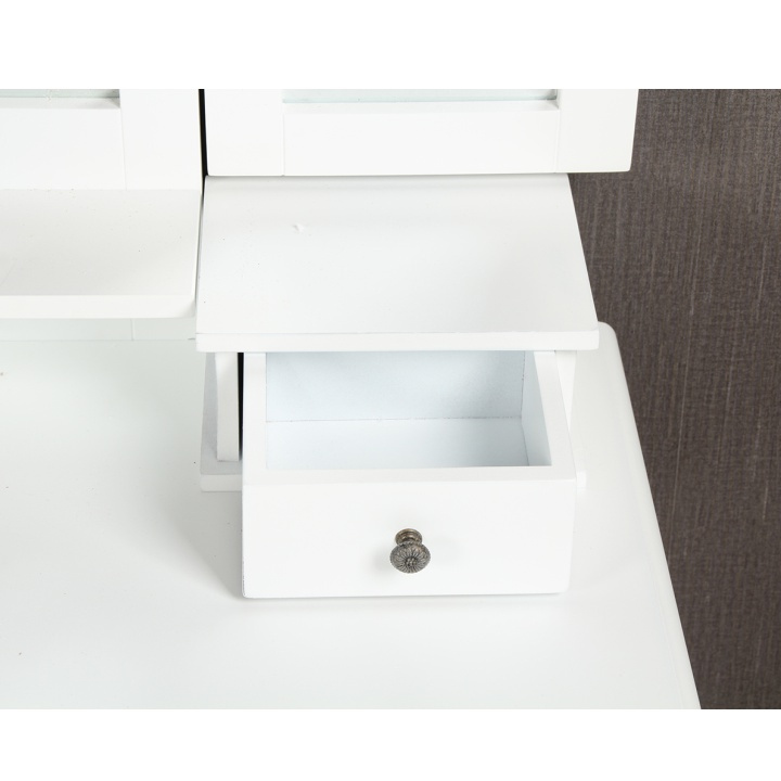Toaletní stolek s taburetem, bílá/stříbrná, REGINA NEW