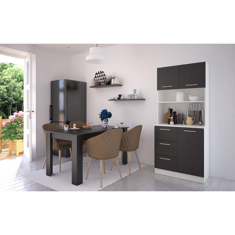 Třídveřový kredenc, bílá/černá, LASET NEW