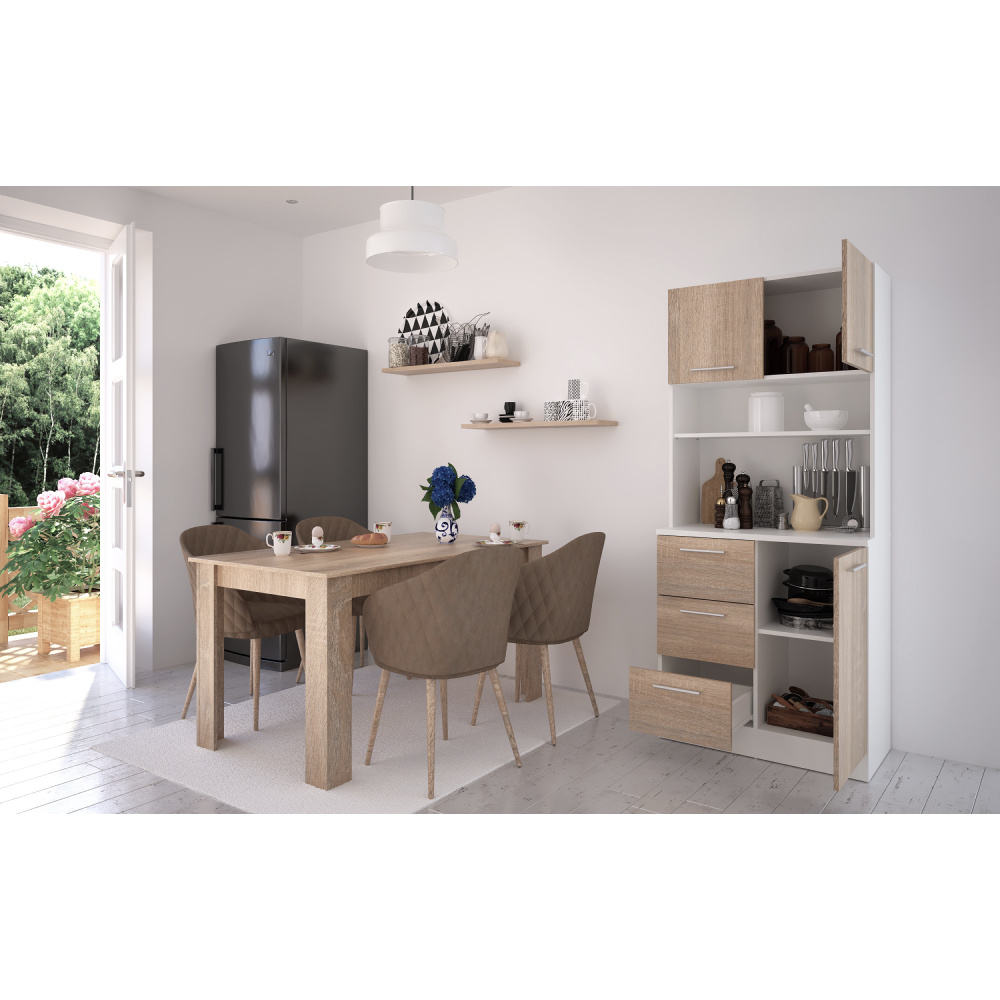 Třídveřový kredenc, bílá/dub sonoma, LASET NEW