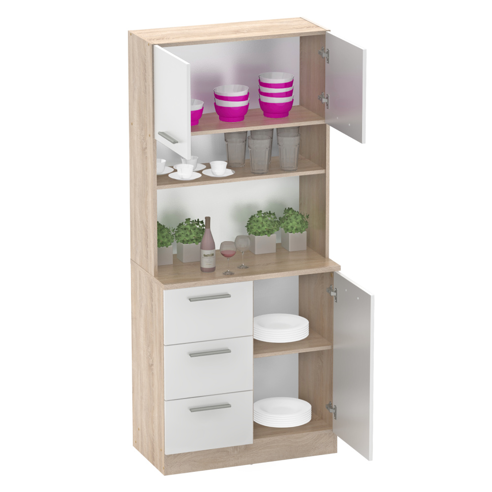 Třídveřový kredenc, dub sonoma/bílá, LASET NEW