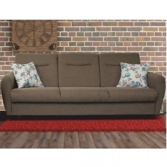 Rozkládací 3-sed a křeslo Materiál: látka Savana / Rose Oděruodolnost textilie podle testu Martindale: 80 000 oděrek Nosnost na osobu: 90 kg Barevné provedení: hnědá Savana 25 / vzorované polštáře Rose 14. Rozměry v cm (ŠxHxV): 3-sed 221x91x90, Plocha na spaní 190x122. Možnost individuálních objednávek v odstínu Berlin 03 a 12 odstínech látky Savana. Možnost objednání polštáře pouze v látce Rose 14. Při individuální objednávce je třeba zaplatit 20% zálohu z dané částky. Po uhrazení zálohy bude Váš požadavek zadán do výroby. Dodací lhůta 6-8 týdnů.