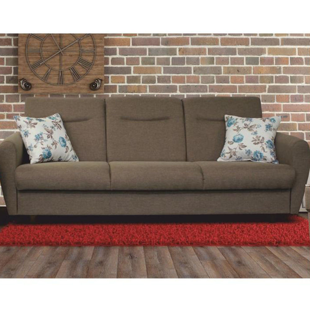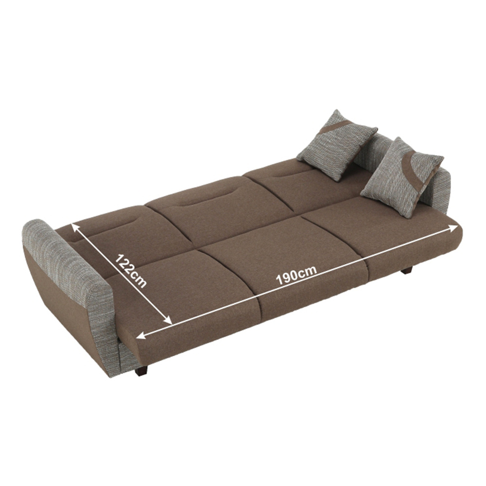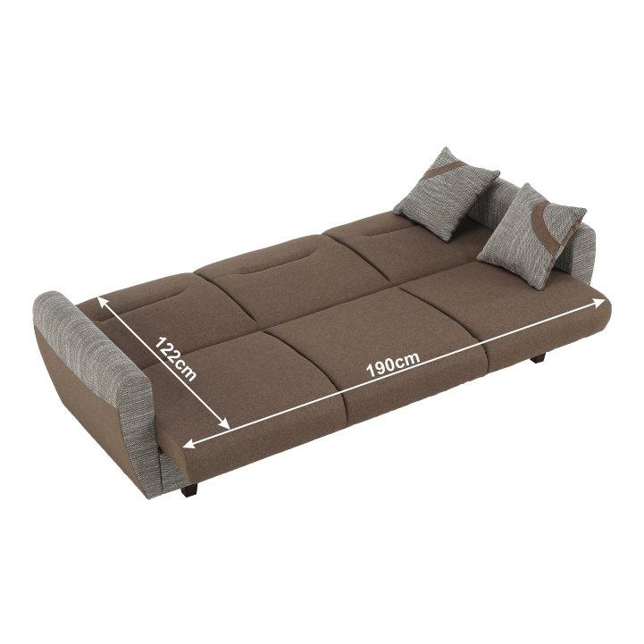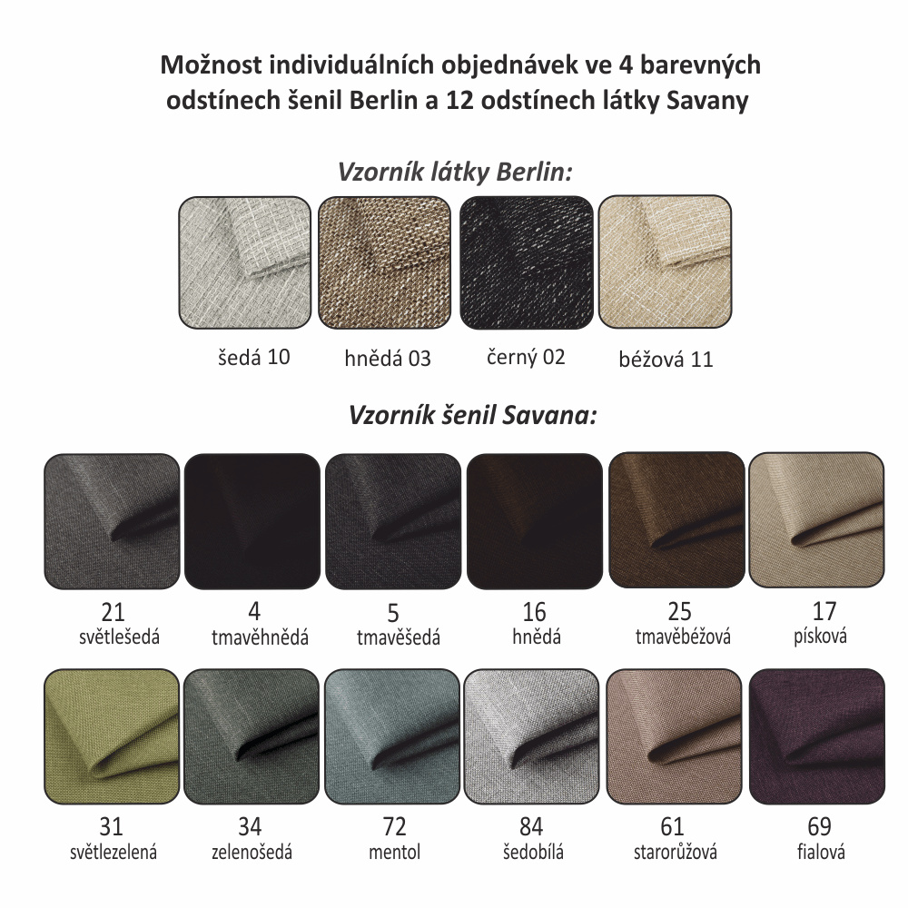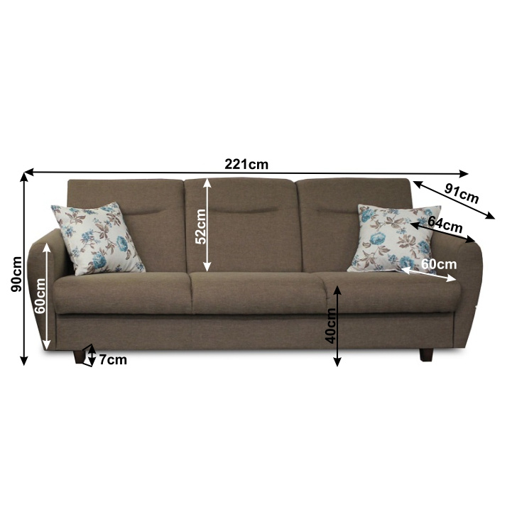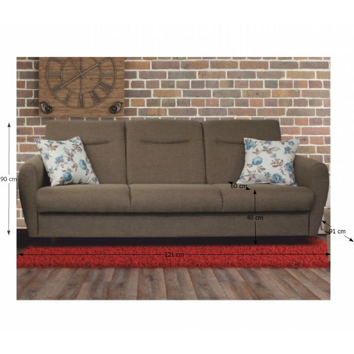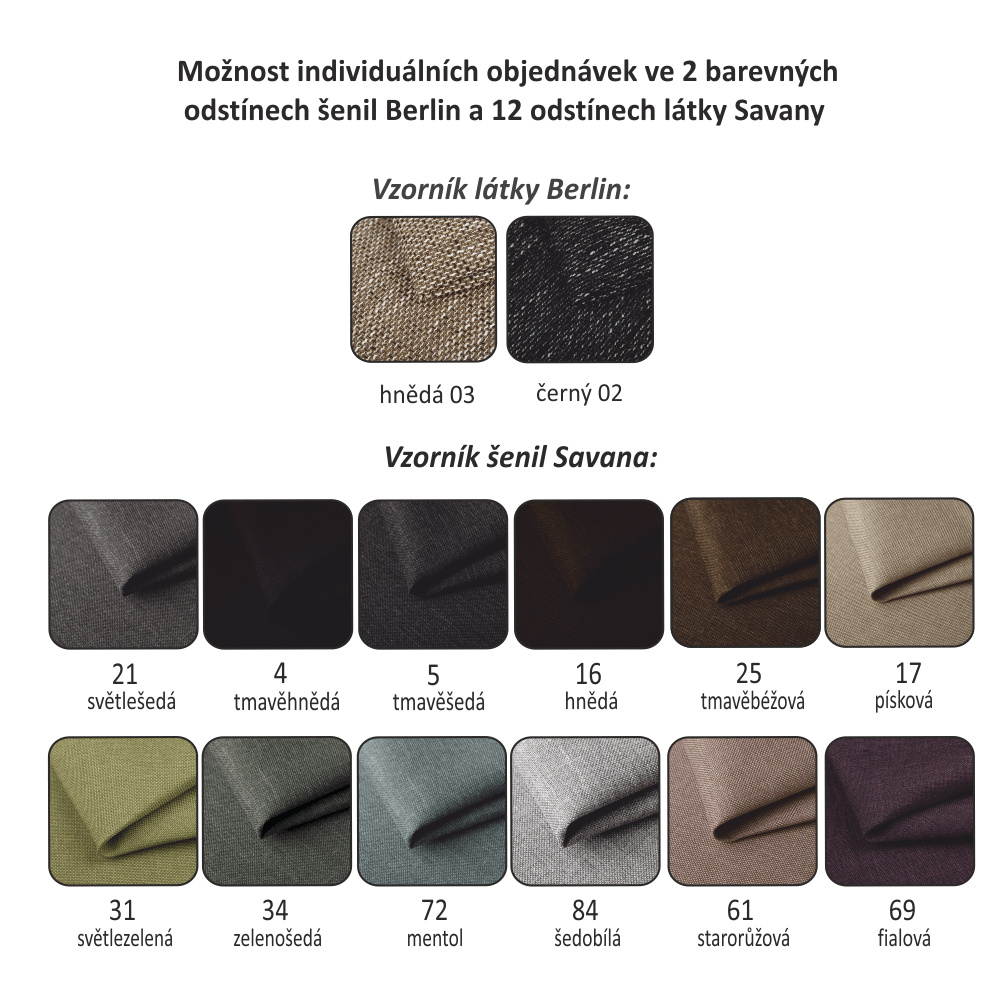 Rozkládací 3-sed a křeslo Materiál: látka Savana / Rose Oděruodolnost textilie podle testu Martindale: 80 000 oděrek Nosnost na osobu: 90 kg Barevné provedení: hnědá Savana 25 / vzorované polštáře Rose 14. Rozměry v cm (ŠxHxV): 3-sed 221x91x90, Plocha na spaní 190x122. Možnost individuálních objednávek v odstínu Berlin 03 a 12 odstínech látky Savana. Možnost objednání polštáře pouze v látce Rose 14. Při individuální objednávce je třeba zaplatit 20% zálohu z dané částky. Po uhrazení zálohy bude Váš požadavek zadán do výroby. Dodací lhůta 6-8 týdnů.