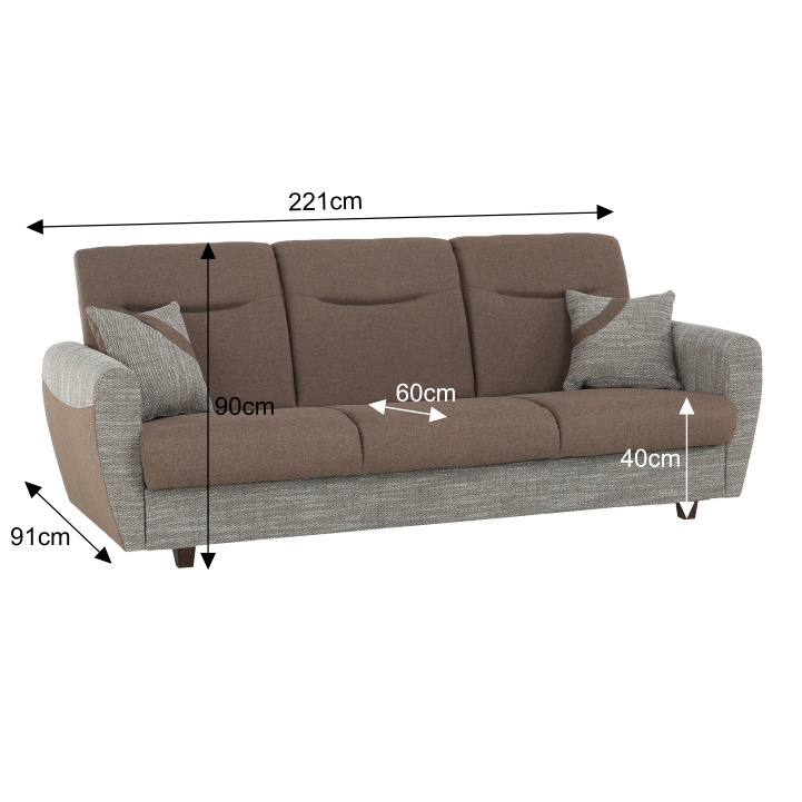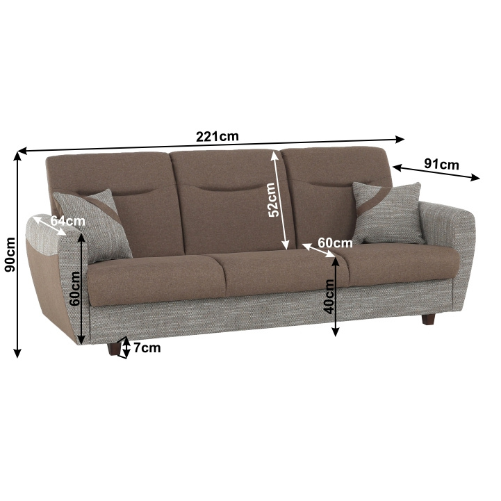 ;"3-sed, rozkládací, MILO. Materiál a barva: korpus šenil Berlin 3 + sedací část savana 25 hnědá. Oděruodolnost textilie Savana podle testu Martindale: 80 000 oděrek Oděruodolnost textilie Berlin podle testu Martindale: 55 000 oděrek Rozměry v cm (ŠxHxV): 3-sed 221x91x90, plocha na spaní 190x122. Nosnost na osobu: 90 kg Možnost individuálních objednávek v odstínu Berlin 03 a 12 odstínech látky Savana. Při individuální objednávce je třeba zaplatit 20% zálohu z dané částky. Po uhrazení zálohy bude Váš požadavek zadán do výroby. Dodací lhůta 6-8 týdnů.