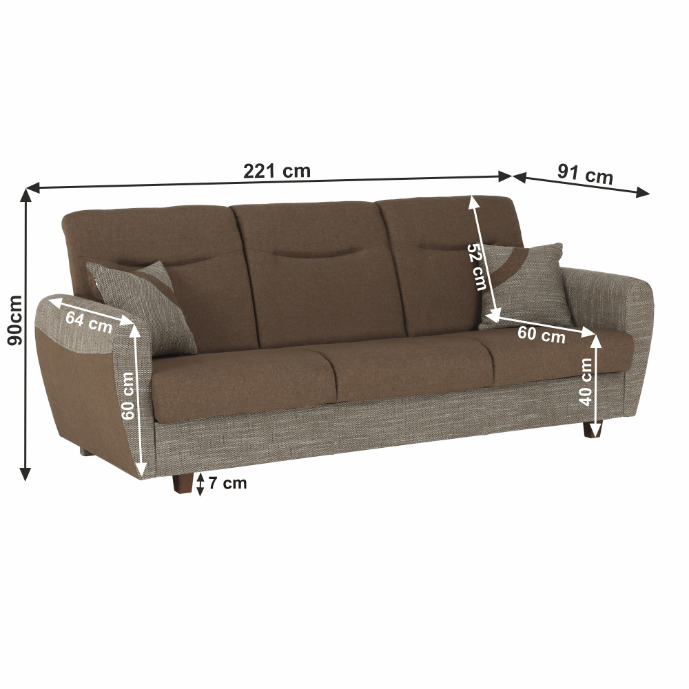 Trojsed, rozkládací, hnědý, MILO 3 SED