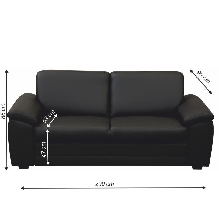 3- sed s opěrkami BITER Materiál: ekokůže Oděruodolnost textilie podle testu Martindale: 100 000 oděrek Barva: černá Rozměry (ŠxHxV): 200x90x88 cm Výška spodního prostoru od podlahy: 3 cm Nosnost na osobu: 90 kg Dodací lhůta 6-8 týdnů.