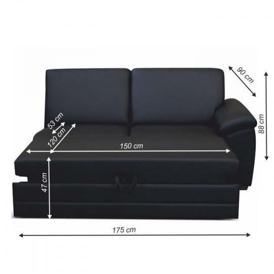 3-sed s opěrkou a s rozkladem, pravá, BITER 3 1B ZF Materiál: ekokůže Oděruodolnost textilie podle testu Martindale: 100 000 oděrek Barva: černá Rozměry (ŠxHxV): 175x90x88 cm Výška spodního prostoru od podlahy: 3 cm Nosnost na osobu: 90 kg Dodací lhůta 6-8 týdnů. Nabízíme vám možnost zvolit si barevný odstín ze sedmi barev látky Cable a ze sedmi barev ekokůže. Odstíny najdete v přiloženém vzorníku. Výběr barevného odstínu poznamenejte při objednávání přímo do poznámky. Při individuální objednávce je třeba zaplatit 20% zálohu z dané částky. Po uhrazení zálohy bude Váš požadavek zadána do výroby. Doba dodání 6-8 týdnů. Cena takto složené sedačky v jiné barvě závisí na počtu jednotlivých dílů, které ji tvoří. Doporučujeme prověřit si konečnou cenu na e-mail adrese nakup@tempo-kondela.sk.