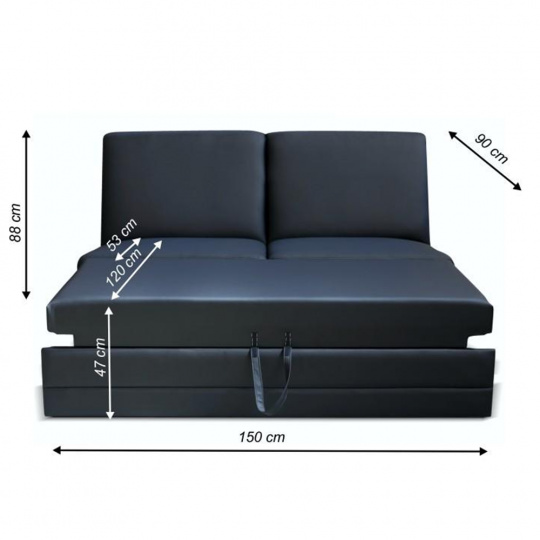 3-sed s rozkladem, BITER 3 BB ZF Materiál: ekokůže Oděruodolnost textilie podle testu Martindale: 100 000 oděrek Barva: černá Rozměry (ŠxHxV): 150x90x88 cm Výška spodního prostoru od podlahy: 3 cm Nosnost na osobu: 90 kg Dodací lhůta 6-8 týdnů. Nabízíme vám možnost zvolit si barevný odstín ze sedmi barev látky Cable a ze sedmi barev ekokůže. Odstíny najdete v přiloženém vzorníku. Výběr barevného odstínu poznamenejte při objednávání přímo do poznámky. Při individuální objednávce je třeba zaplatit 20% zálohu z dané částky. Po uhrazení zálohy bude Váš požadavek zadána do výroby. Doba dodání 6-8 týdnů. Cena takto složené sedačky v jiné barvě závisí na počtu jednotlivých dílů, které ji tvoří. Doporučujeme prověřit si konečnou cenu na e-mail adrese nakup@tempo-kondela.sk.