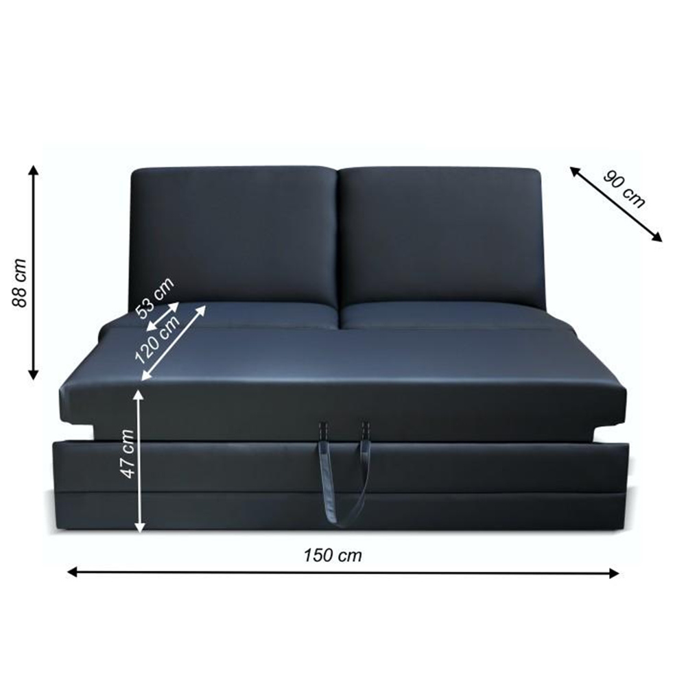 3-sed s rozkladem, BITER 3 BB ZF Materiál: ekokůže Oděruodolnost textilie podle testu Martindale: 100 000 oděrek Barva: černá Rozměry (ŠxHxV): 150x90x88 cm Výška spodního prostoru od podlahy: 3 cm Nosnost na osobu: 90 kg Dodací lhůta 6-8 týdnů. Nabízíme vám možnost zvolit si barevný odstín ze sedmi barev látky Cable a ze sedmi barev ekokůže. Odstíny najdete v přiloženém vzorníku. Výběr barevného odstínu poznamenejte při objednávání přímo do poznámky. Při individuální objednávce je třeba zaplatit 20% zálohu z dané částky. Po uhrazení zálohy bude Váš požadavek zadána do výroby. Doba dodání 6-8 týdnů. Cena takto složené sedačky v jiné barvě závisí na počtu jednotlivých dílů, které ji tvoří. Doporučujeme prověřit si konečnou cenu na e-mail adrese nakup@tempo-kondela.sk.