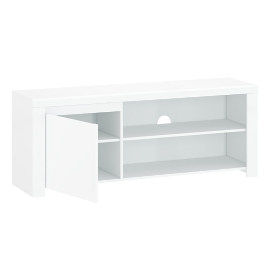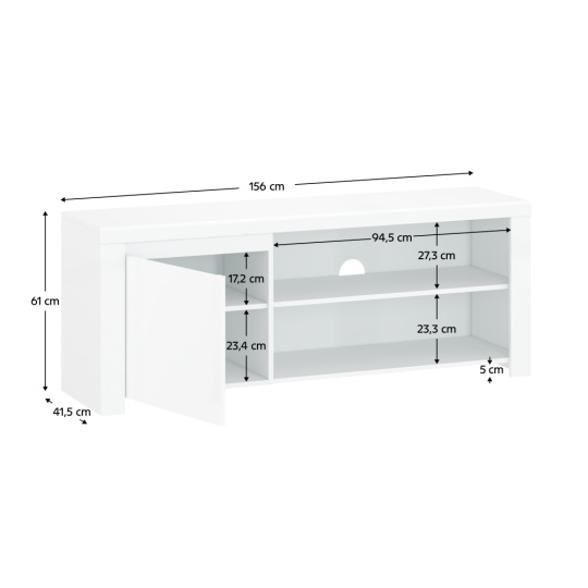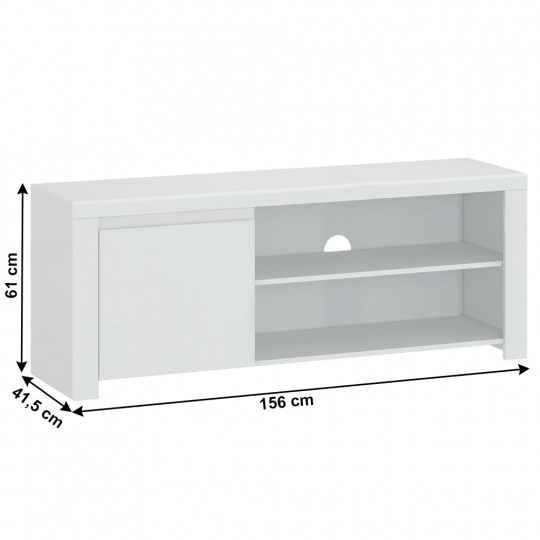 Materiál: laminovaná DTD / MDF Barva: bílý lesk Rozměry (ŠxHxV): 156x41,5x61 cm Materiál dvířka: MDF Tloušťka materiálu: 1,6 cm ABS hrany Dvířka z MDF kombinovaná skříňka Obsahuje otevřené police a otevírací skříňku Otevřený i uzavřený úložný prostor bez úchytek Moderní design a elegantní vzhled Dodávané v demontu