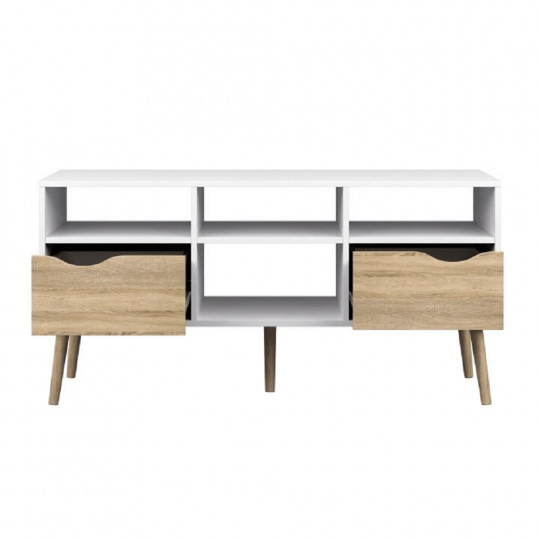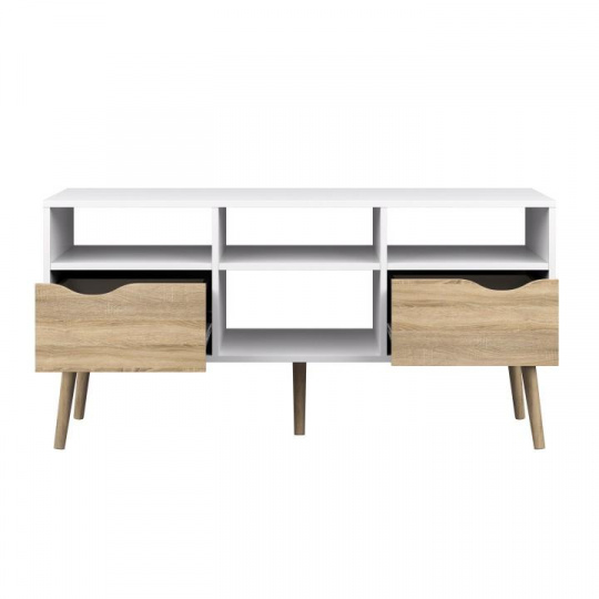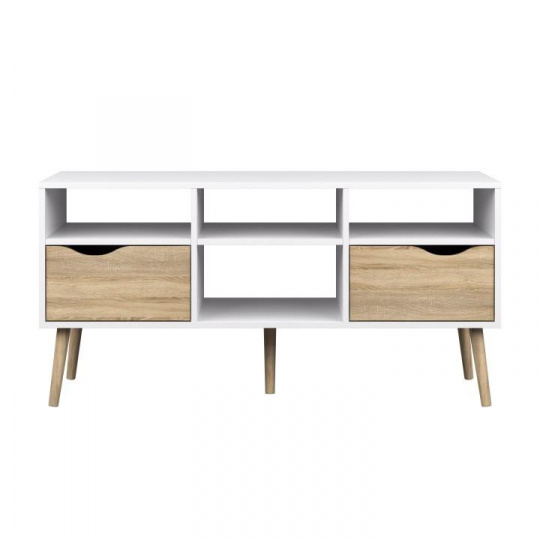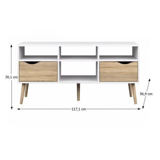 TV stolek 75391 OSLO Materiál: DTD laminovaná Provedení: dub sonoma / bílá Rozměry (ŠxHxV): 117,1x39,10x56,90 cm Výška nožiček: 15 cm Tloušťka materiálu: 1,6 cm