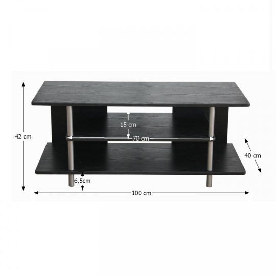 TV stolek Quido Materiál: MDF foliovaná / kov Barva: černá / stříbrná Rozměry (ŠxHxV): 100x40x42 cm Tloušťka materiálu: 15 mm Dodávané v demontu