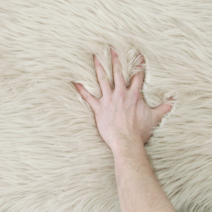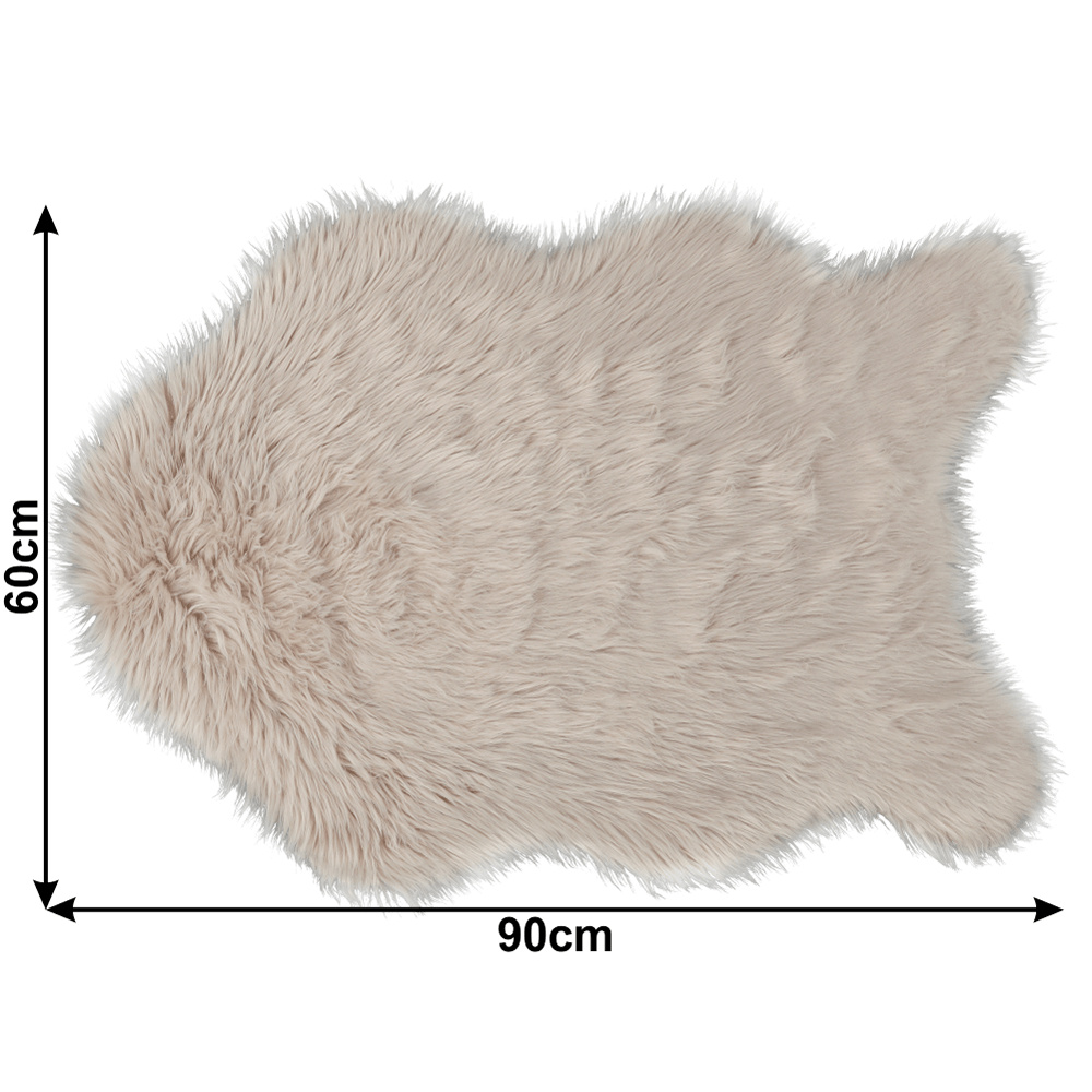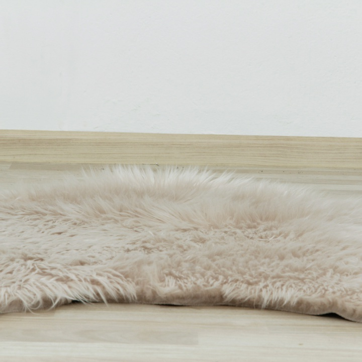 Umělá kožešina béžové barvy ze 100% polyesteru. Rozměry (ŠxD): 60x90 cm Výška vlasu: 5,5-6 cm Neprat v pračce Prát ručně při 30 stupních Nežehlit Nesušit v sušičce