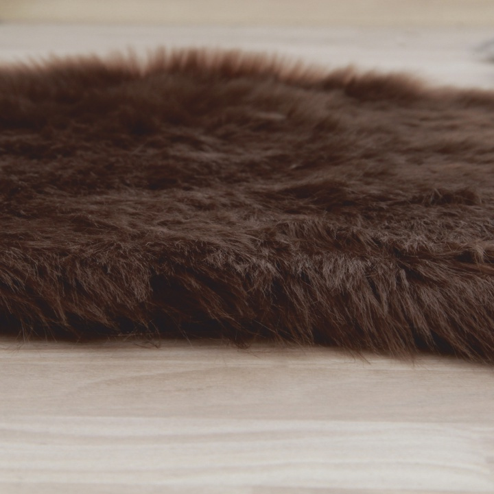 Umělá kožešina hnědé barvy ze 100% polyesteru. Rozměry (ŠxD): 60x90 cm Výška vlasu: 5,5-6 cm Neprat v pračce Prát ručně při 30 stupních Nežehlit Nesušit v sušičce