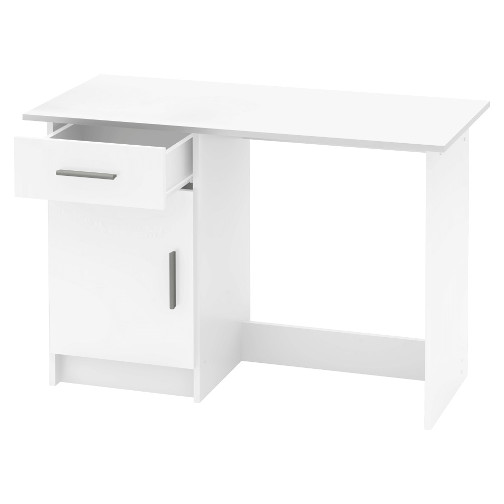 Materiál: DTD laminovaná/HDF (dno šuplíku a zadní část stolu) Barva: bílá Rozměry (ŠxHxV): 108,5x50x75,4 cm Tloušťka materiálu: 1,6 cm Univerzální Možnost namontovat šuplík a skříňku na pravou nebo levou stranu Jeden šuplík Vnitřní rozměry šuplíku (ŠxHxV): 32x33,3x14 cm Nosnost šuplíku: 5 kg Jedna skříňka Vnitřní rozměry skříňky (ŠxHxV): 37,6x39x46,7 cm Kluzáky Plastové úchytky Kvalitní slovenský výrobek Dodáváno v demontu