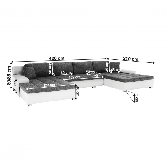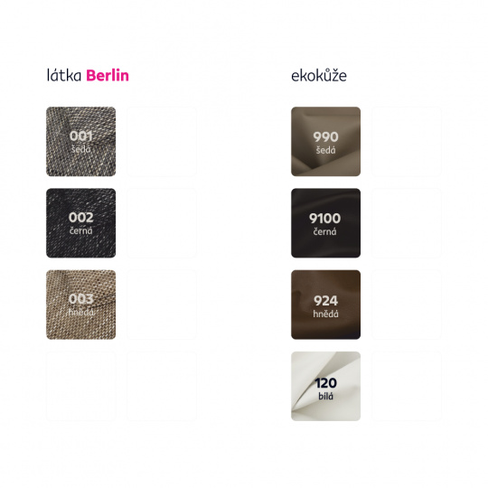 Materiál: ekokůže / látka šenil Oděruodolnost textilie podle testu Martindale Berlin: 55 000 oděrek Oděruodolnost ekokůže podle testu Martindale Ekokůže: 100 000 oděrek Barva: bílá 120 / Berlin 01 šedý melír Rozměry (ŠxHxV): 420x210 / 210x85 cm Výška sedu: 40 cm Šířka otomanu: 123 cm Šířka prostoru mezi Ottomany: 152 cm Rozměry velkého polštáře (ŠxV): 80x50 cm Rozměry malého polštáře (ŠxV): 45x45 cm Výška opěrky na ruku: 51 cm Hloubka sedu (s polštáři / bez polštářů): 65/90 cm Výška bez polštářů / s polštáři: 80/85 cm Výška spodního prostoru od podlahy: 5 cm Nosnost na osobu: 90 kg Výplň: pružina faliste / PUR pěna univerzální provedení rozkládací S polštáři (4 velké, 2 malé) S úložným prostorem Dodávané s polštáři Dodávané v demontu Možnost individuálních objednávek sedací soupravy v 4 barevných provedeních ekokůže v kombinaci s 3 barevnými provedeními látky Berlin v ceně 36.790,- Kč. Při individuální objednávce je třeba zaplatit 20% zálohu z dané částky. Po uhrazení zálohy bude Váš požadavek zadána do výroby. Dodací lhůta 6-8 týdnů.