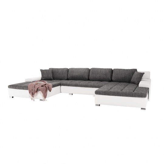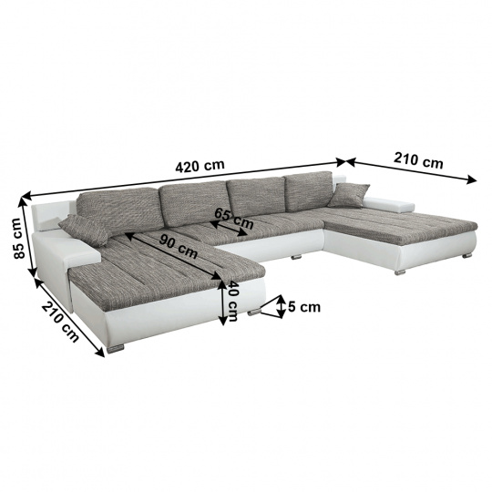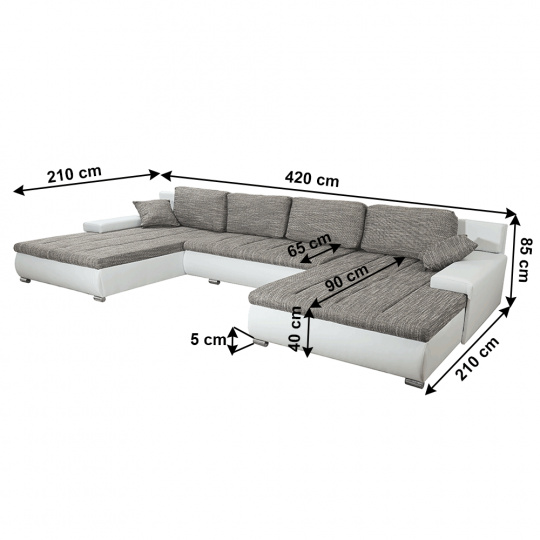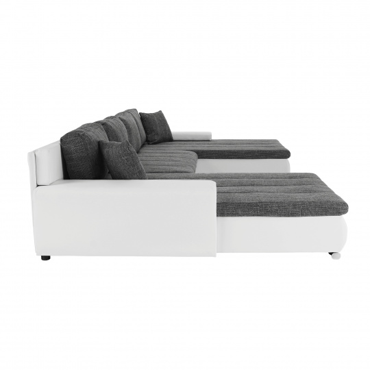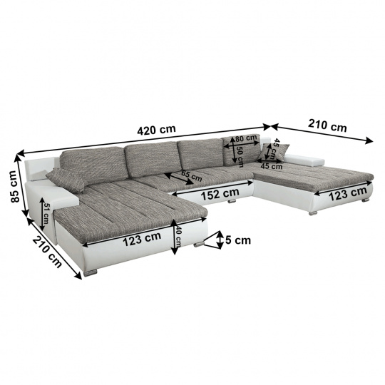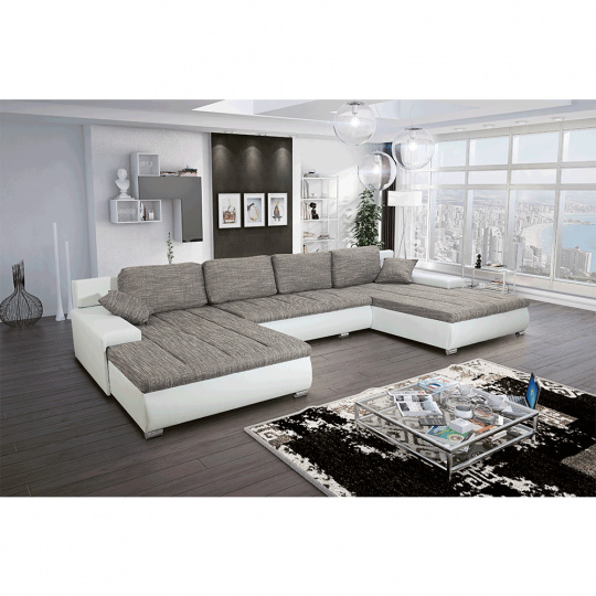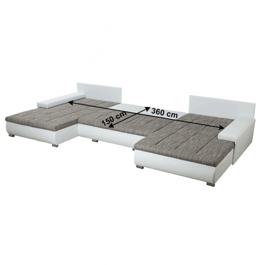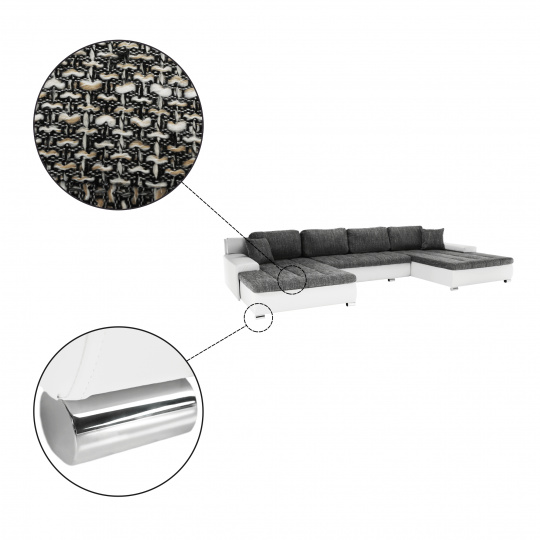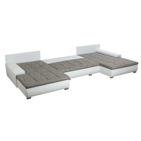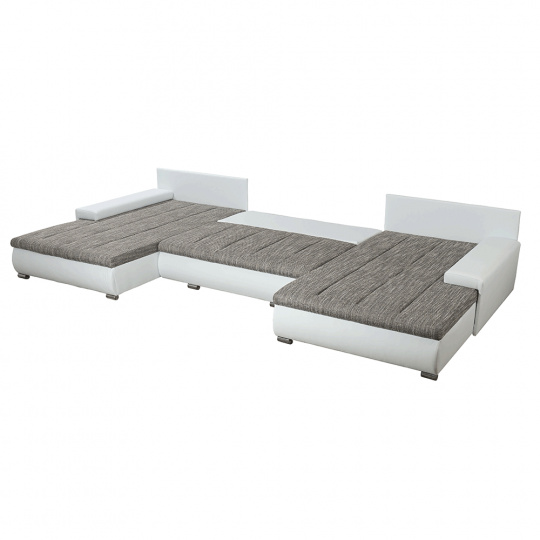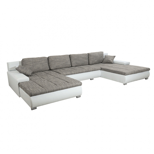 Univerzální sedací souprava, ekokůže bílá / látka šedý melír, TONIKS U UNI