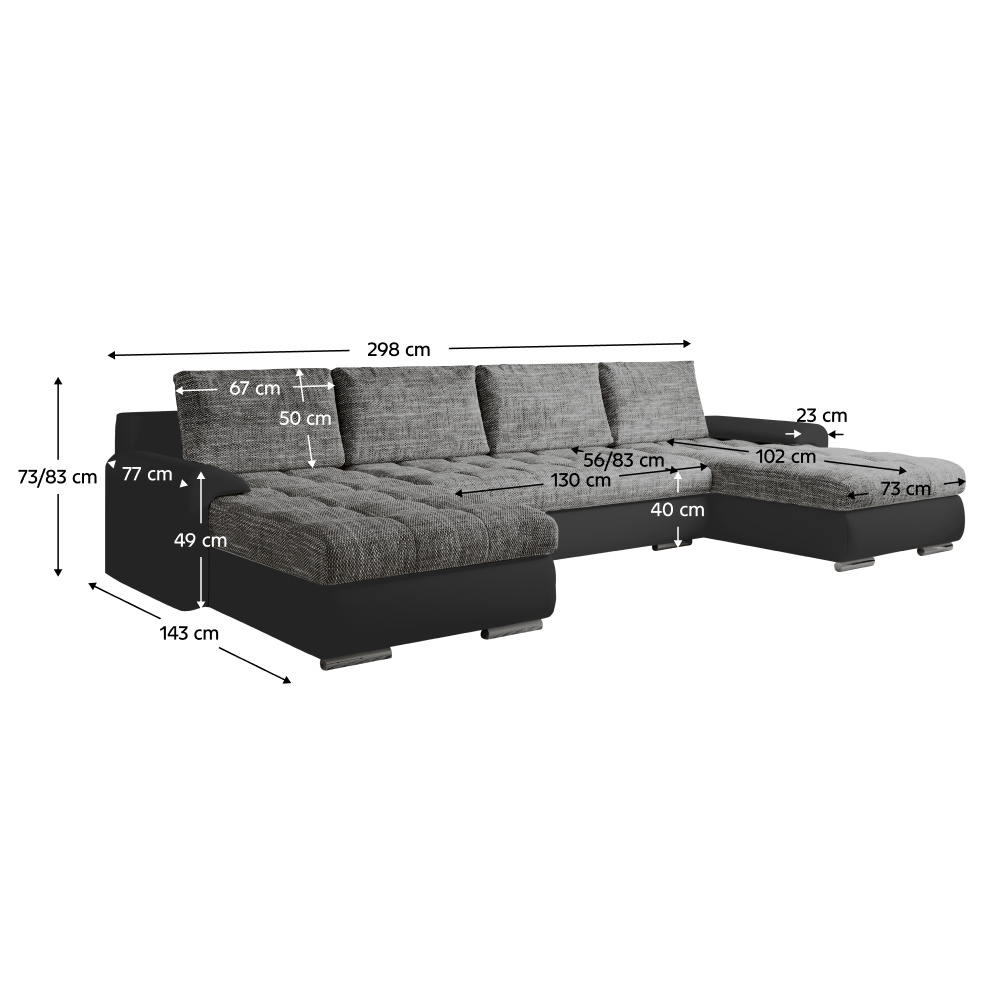 Materiál: látka Berlin 01/ekokůže Oděruodolnost textilie Berlin podle testu Martindale: 55 000 oděrů Oděruodolnost ekokůže podle testu Martindale: 100 000 oděrů Barva: šedý melír/černá Rozměry (ŠxHxV): 298x143x73/83 cm Výška sedu: 40 cm Hloubka sedu: 56/83 cm Rozkládací Plocha na spaní (ŠxD): 128x241 cm Šířka sedáku: 130 cm Rozměry opěrky na ruku (ŠxHxV): 23x77x49 cm Rozměry otomanu (ŠxH): 73x102 cm Na nožičkách Materiál nožiček: plast Barva nožiček: stříbrná Výplň: pružina falista/PUR pěna Tvar U Univerzální Celočalouněná Rohová S úložným prostorem Dodáváno s polštáři Rozměry polštářů (ŠxV): 67x50 cm Ozdobné lemování Dodáváno v demontu Možnost individuálních objednávek sedací soupravy ve 4 barevných provedeních ekokůže v kombinaci se 3 barevnými provedeními látky Berlin v ceně 26 850 Kč. Při individuální objednávce je třeba zaplatit 20% zálohu z dané částky. Po uhrazení zálohy bude Váš požadavek zadán do výroby. Dodací lhůta 6-8 týdnů.