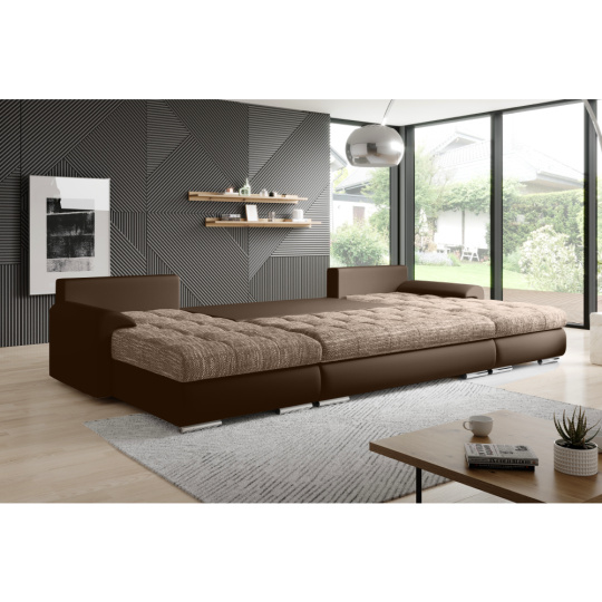 Materiál: látka Berlin 03/ekokůže Oděruodolnost textilie Berlin podle testu Martindale: 55 000 oděrů Oděruodolnost ekokůže podle testu Martindale: 100 000 oděrů Barva: hnědý melír/hnědá Rozměry (ŠxHxV): 298x143x73/83 cm Výška sedu: 40 cm Hloubka sedu: 56/83 cm Rozkládací Plocha na spaní (ŠxD): 128x241 cm Šířka sedáku: 130 cm Rozměry opěrky na ruku (ŠxHxV): 23x77x49 cm Rozměry otomanu (ŠxH): 73x102 cm Na nožičkách Materiál nožiček: plast Barva nožiček: stříbrná Výplň: pružina falista/PUR pěna Tvar U Univerzální Celočalouněná Rohová S úložným prostorem Dodáváno s polštáři Rozměry polštářů (ŠxV): 67x50 cm Ozdobné lemování Dodáváno v demontu Možnost individuálních objednávek sedací soupravy ve 4 barevných provedeních ekokůže v kombinaci se 3 barevnými provedeními látky Berlin v ceně 26 850 Kč. Při individuální objednávce je třeba zaplatit 20% zálohu z dané částky. Po uhrazení zálohy bude Váš požadavek zadán do výroby. Dodací lhůta 6-8 týdnů.