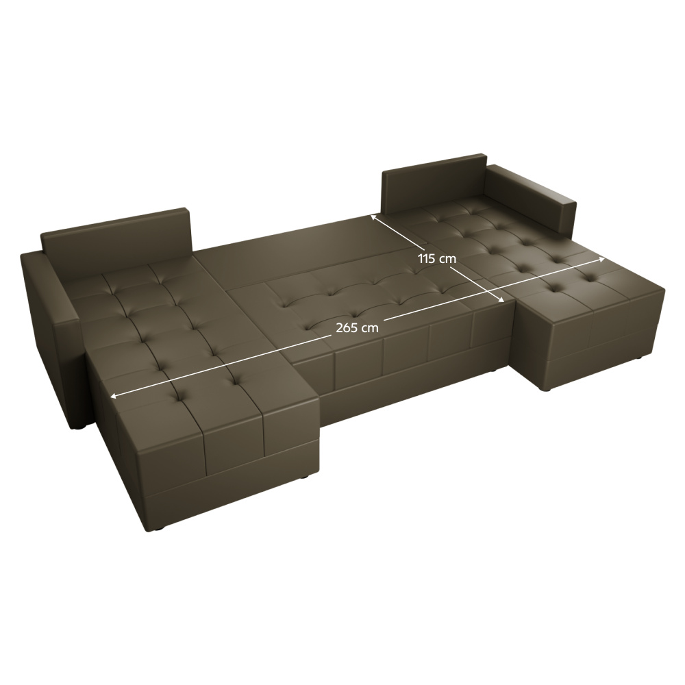 Materiál: látka Riviera 26 Oděruodolnost textilie podle testu Martindale: 90 000 oděrů Barva: hnědá Rozměry (ŠxHxV): 289x140/140x72 cm Rozkládací Plocha na spaní (ŠxD): 115x265 cm Výška sedu: 39 cm Hloubka sedu: 45/65 cm Šířka sedáku: 131 cm Šířka otomanu: 69 cm Na nožičkách Materiál nožiček: plast Barva nožiček: černá Výška spodního prostoru od podlahy: 2,5 cm Výplň: PUR pěna T28 Univerzální provedení Tvar U Rohová S úložným prostorem Dodáváno s polštáři Rozměry dekorativních polštářů (ŠxV): 45x30cm Rozměry opěrkového polštáře (ŠxV): 65x45 cm Dodáváno v demontu