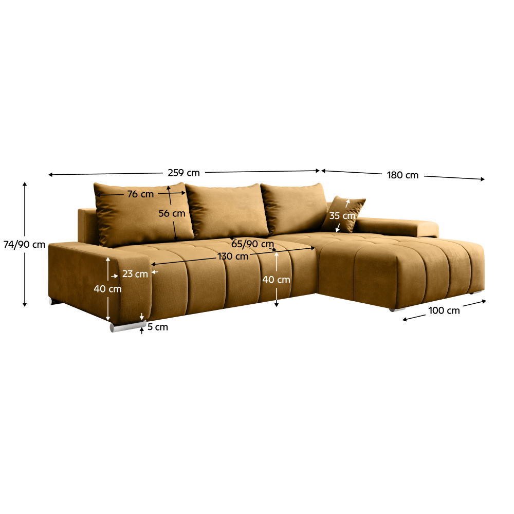 Materiál: látka Monolith 48 Oděruodolnost textilie podle testu Martindale: 100 000 oděrů Barva: hořčicová Rozměry (ŠxHxV): 259x180x74/90 cm Rozkládací Plocha na spaní (ŠxD): 137x212 cm Výška sedu: 40 cm Hloubka sedu: 65/90 cm Šířka sedáku: 130 cm Šířka otomanu: 100 cm Na nožičkách Materiál nožiček: plast Barva nožiček: stříbrná Výška spodního prostoru od podlahy: 5 cm Výplň: pružina falista/PUR pěna Univerzální provedení Celočalouněná Rohová S úložným prostorem Dodáváno s polštáři Rozměry dekorativních polštářů (ŠxV): 35x35 cm Rozměry opěrkového polštáře (ŠxV): 76x56 cm Voděodolný materiál Dekorativně prošívaná Dodáváno v demontu Možnost individuálních objednávek sedací soupravy v 6 barevných provedeních látky Monolith za cenu 21 890 Kč. Při individuální objednávce je nutné zaplatit 20% zálohu z uvedené částky. Po uhrazení zálohy bude vaše objednávka zadána do výroby. Dodací lhůta 6-8 týdnů.