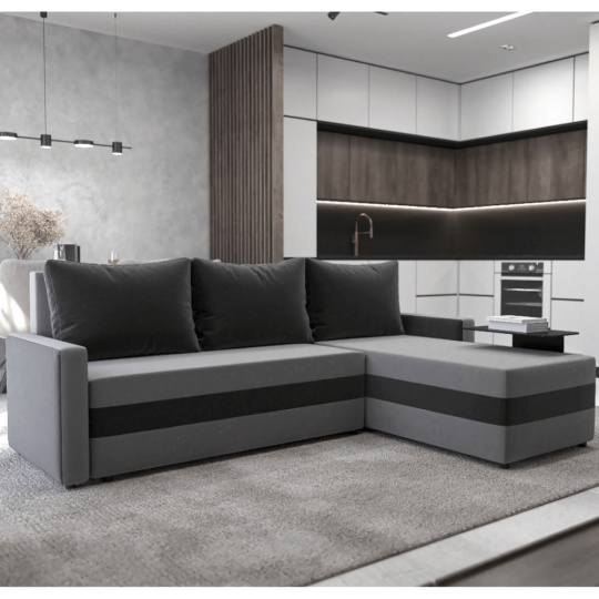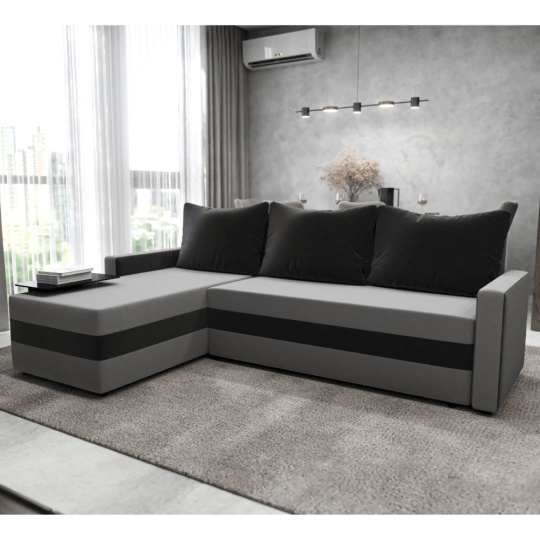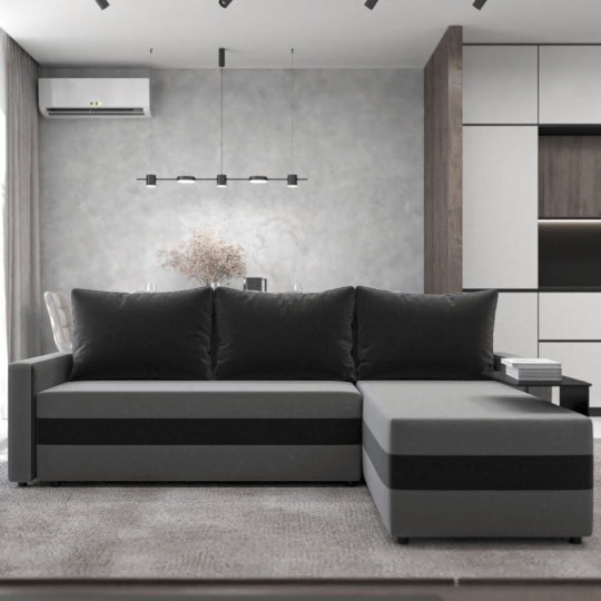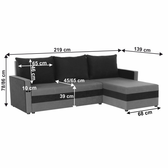 Materiál: látka Alova Oděruodolnost textilie podle testu Martindale: 85 000 oděrek Provedení: 36 šedá / 04 černá Rozměry (ŠxHxV): 219x139x78 / 86 cm Plocha na spaní (ŠxD): 119x199 cm Výška sedu: 39 cm Hloubka sedu: 45/65 cm Výška spodního prostoru od podlahy: 2,5 cm Rozměr polštáře (ŠxV): 65x46 cm Šířka otomanu: 68 cm Opěrka na ruku (ŠxV): 10x54 cm Nosnost na osobu: 90 kg Univerzální (L / P) rohová rozkládací S úložným prostorem S polštáři molitanová výplň Dodávané v demontu.