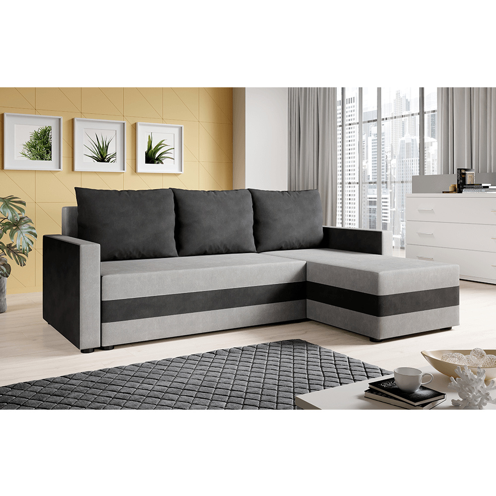 Materiál: látka Alova Oděruodolnost textilie podle testu Martindale: 85 000 oděrek Provedení: 36 šedá / 04 černá Rozměry (ŠxHxV): 219x139x78 / 86 cm Plocha na spaní (ŠxD): 119x199 cm Výška sedu: 39 cm Hloubka sedu: 45/65 cm Výška spodního prostoru od podlahy: 2,5 cm Rozměr polštáře (ŠxV): 65x46 cm Šířka otomanu: 68 cm Opěrka na ruku (ŠxV): 10x54 cm Nosnost na osobu: 90 kg Univerzální (L / P) rohová rozkládací S úložným prostorem S polštáři molitanová výplň Dodávané v demontu.