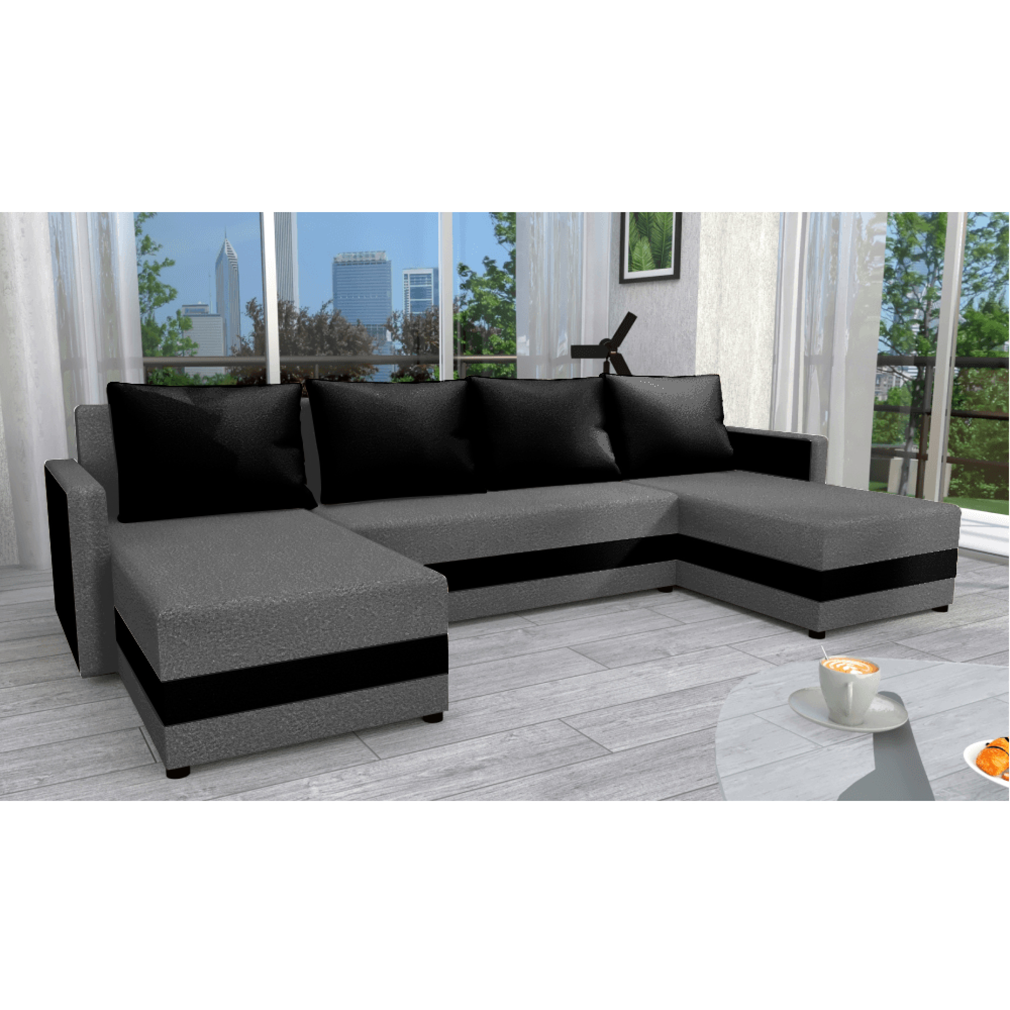 Univerzální sedací souprava, šedá/černá, PAULITA U
