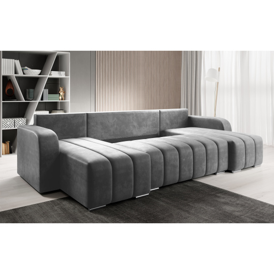 Materiál čalounění: Monolith 85 Oděruodolnost látky podle testu Martindale: 100 000 Barva čalounění: šedá Rozměry (ŠxHxV): 320x147/147x86 cm Plocha na spaní (ŠxD): 130x275 cm Výška sedu: 47 cm Hloubka sedu: 50 cm Šířka otomanů: 70 cm Šířka sedáku: 135 cm Šířka opěrky na ruku: 20 cm Na nožičkách Materiál nožiček: plast Barva nožiček: stříbrná Výška spodního prostoru od podlahy: 3 cm Nosnost na osobu: 90 kg Výplň: bonelová pružina+Pur pěna Rozkládací Celočalouněná Univerzální Dekorativní prošití Voděodolný materiál S úložným prostorem Dodávána s polštáři 4 velké polštáře 3 malé polštáře Rozměry velkých polštářů (ŠxV): 67x50 cm Rozměry malých polštářů (ŠxV): 38x38 cm Dodáváno v demontu