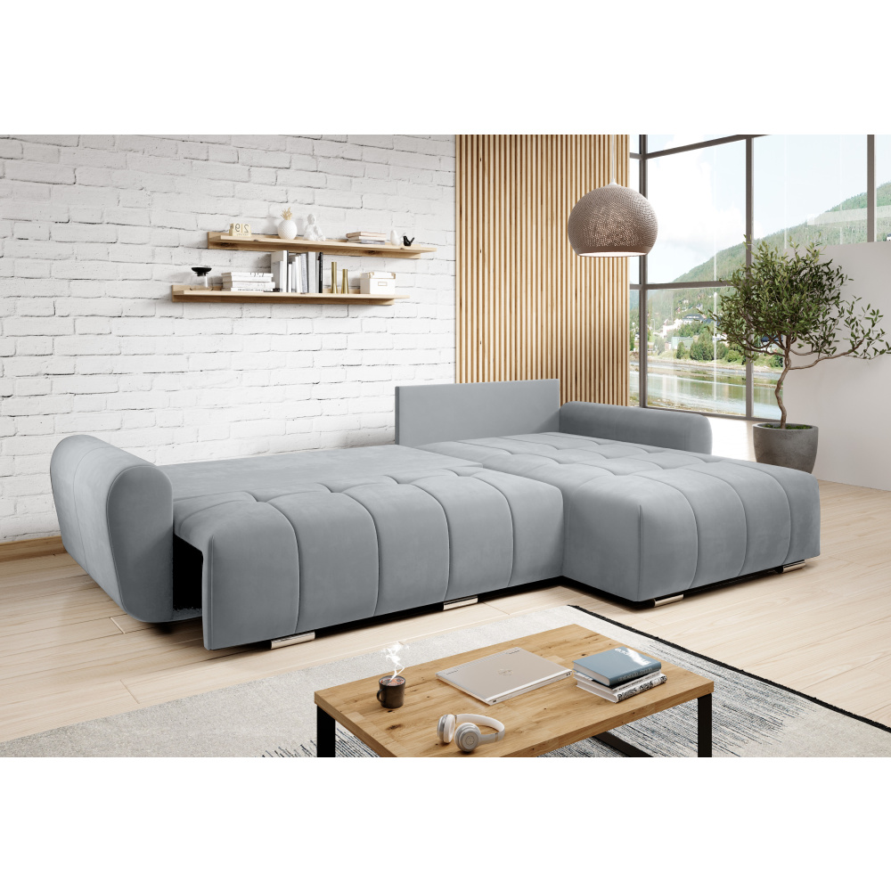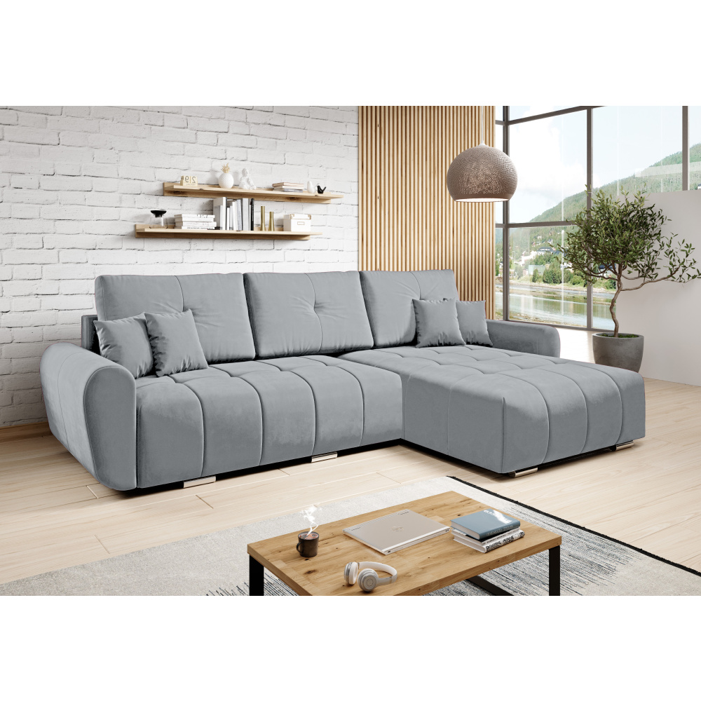 Univerzální sedací souprava, světle šedá látka, LONGA ROH