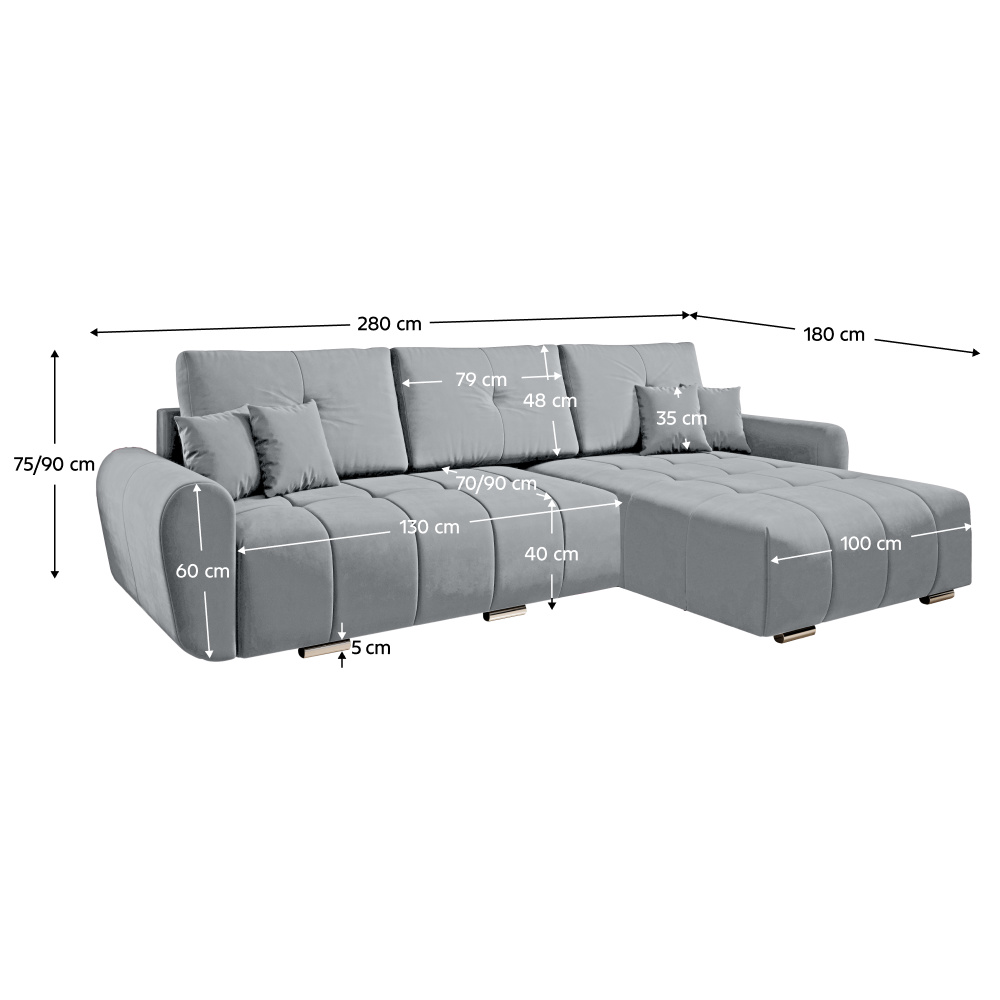 Materiál: látka Monolith 84 Oděruodolnost textilie podle testu Martindale: 100 000 oděrů Barva: světle šedá Rozměry (ŠxHxV): 280x180x75/90 cm Rozkládací Plocha na spaní (ŠxD): 134x230 cm Výška sedu: 40 cm Hloubka sedu: 70/90 cm Šířka sedáku: 130 cm Šířka otomanu: 100 cm Na nožičkách Materiál nožiček: plast Barva nožiček: stříbrná Výška spodního prostoru od podlahy: 5 cm Výplň: pružina falista/PUR pěna Univerzální provedení Celočalouněná Rohová S úložným prostorem Dodáváno s polštáři Rozměry dekorativních polštářů (ŠxV): 35x35 cm Rozměry opěrkového polštáře (ŠxV): 79x48 cm Voděodolný materiál Dekorativně prošívaná Dodáváno v demontu Možnost individuálních objednávek sedací soupravy v 7 barevných provedeních látky Monolith za cenu 22 250 Kč. Při individuální objednávce je nutné zaplatit 20% zálohu z dané částky. Po zaplacení zálohy bude vaše požadavka zadána do výroby. Dodací lhůta 6-8 týdnů.