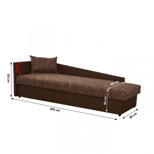 Válenda s úložným prostorem, levé provedení, ekokůže hnědá + látka vzor, JUDIT