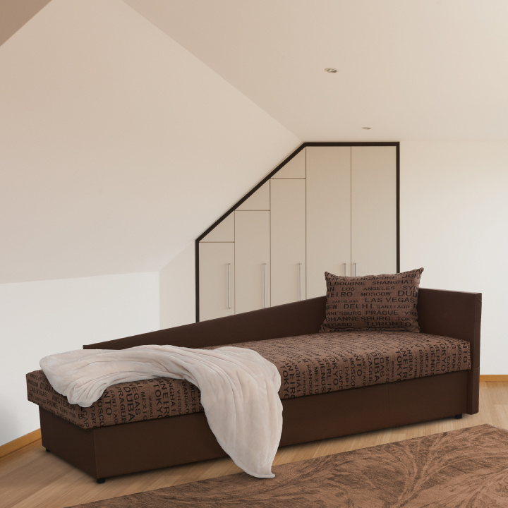 Válenda s úložným prostorem, pravé provedení, ekokůže hnědá + látka vzor, JUDIT