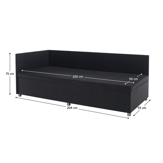 Materiál: DTD laminovaná/látka Trinity 34 Oděruodolnost textilie podle testu Martindale: 210 000 oděrů Jádro válendy: pur pěna T28 Barva: šedá Rozměry (ŠxHxV): 93x204x75 cm Plocha na spaní (ŠxD): 90x200 cm Výška od země po matraci: 42 cm Nosnost: 110 kg Tvrdost matrace: H3 Univerzální Úložný prostor Boční výklopný mechanismus Vysoké čelo Praktická boční čela Čela zabraňující odření stěny Prošívaná čela Dekorativní knoflíky Dodáváno v demontu