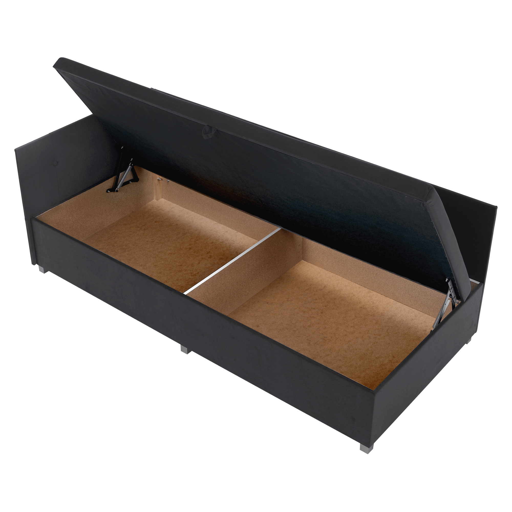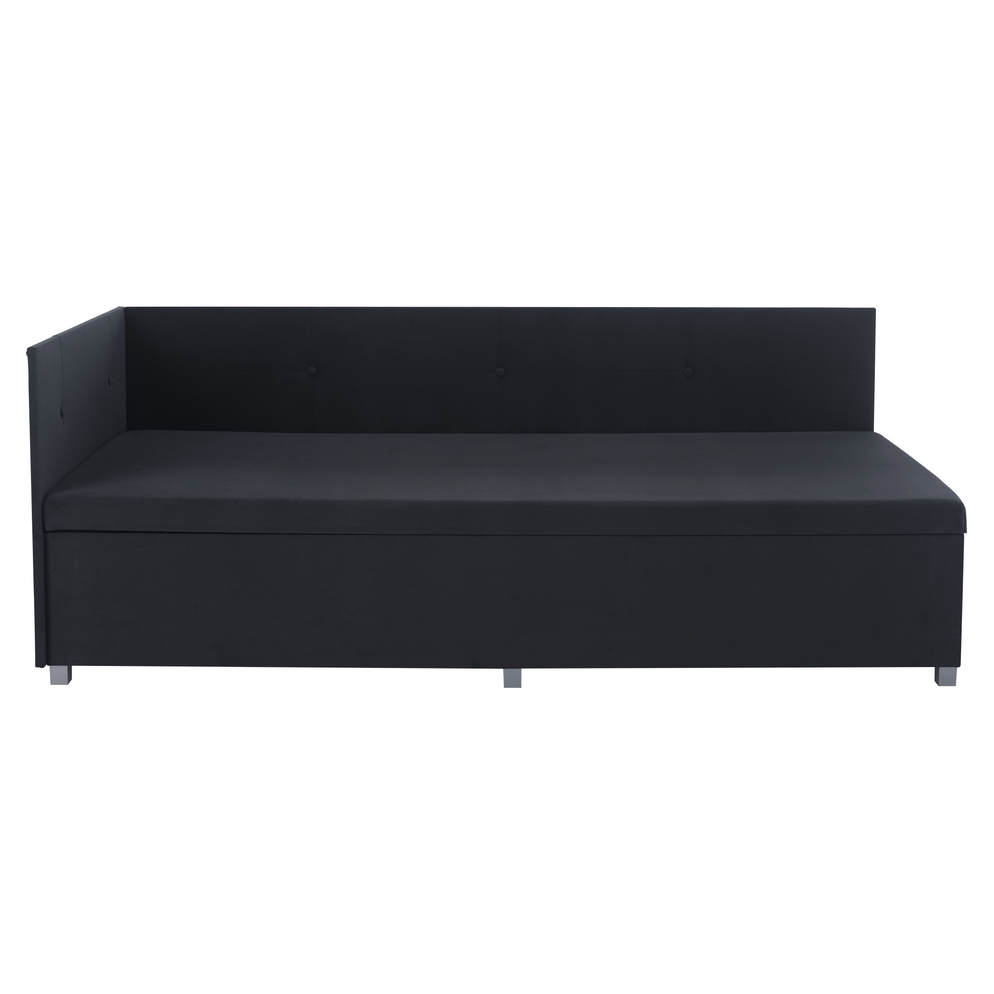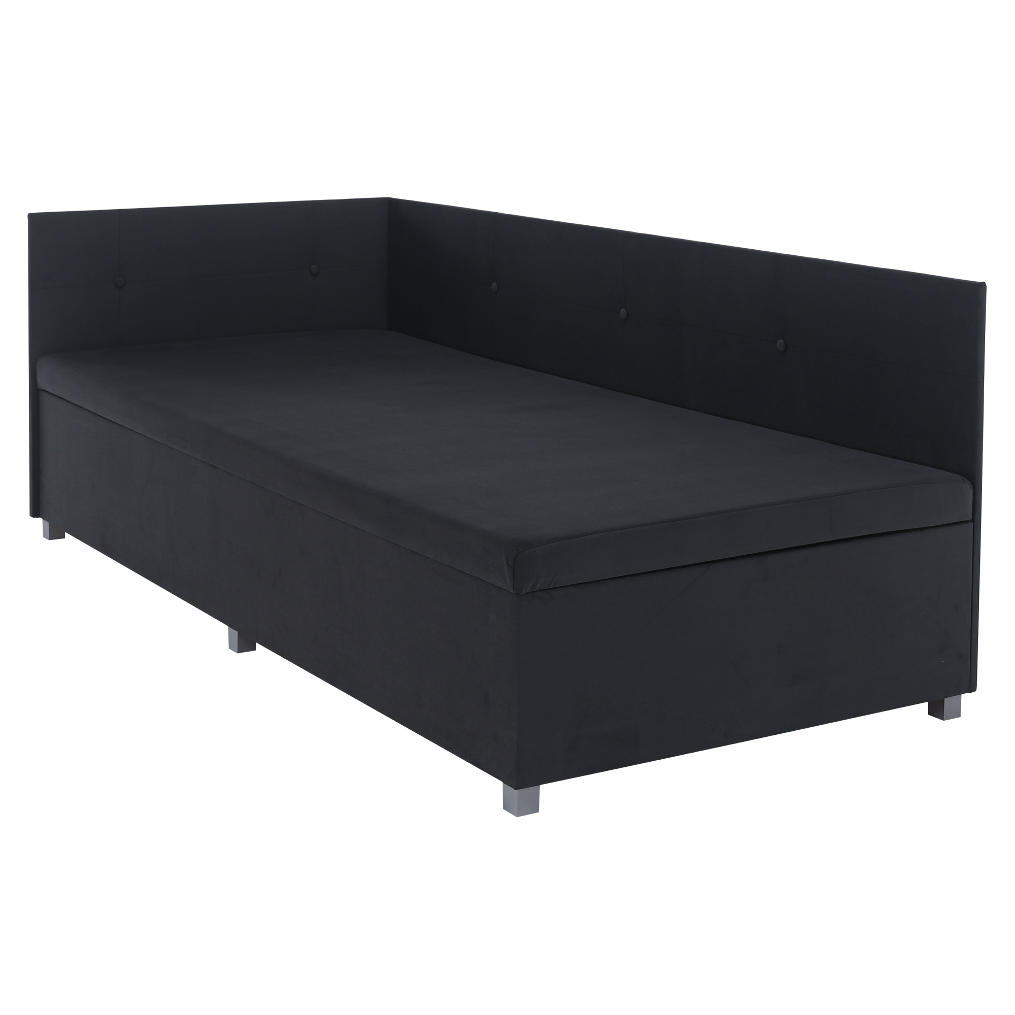 Materiál: DTD laminovaná/látka Trinity 34 Oděruodolnost textilie podle testu Martindale: 210 000 oděrů Jádro válendy: pur pěna T28 Barva: šedá Rozměry (ŠxHxV): 93x204x75 cm Plocha na spaní (ŠxD): 90x200 cm Výška od země po matraci: 42 cm Nosnost: 110 kg Tvrdost matrace: H3 Univerzální Úložný prostor Boční výklopný mechanismus Vysoké čelo Praktická boční čela Čela zabraňující odření stěny Prošívaná čela Dekorativní knoflíky Dodáváno v demontu