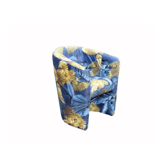Vyrobeno je v krásné vzorované látce v odstínech modrá - žlutá (KA12613). Hlavním motivem na potahu jsou velké listy rostlin.